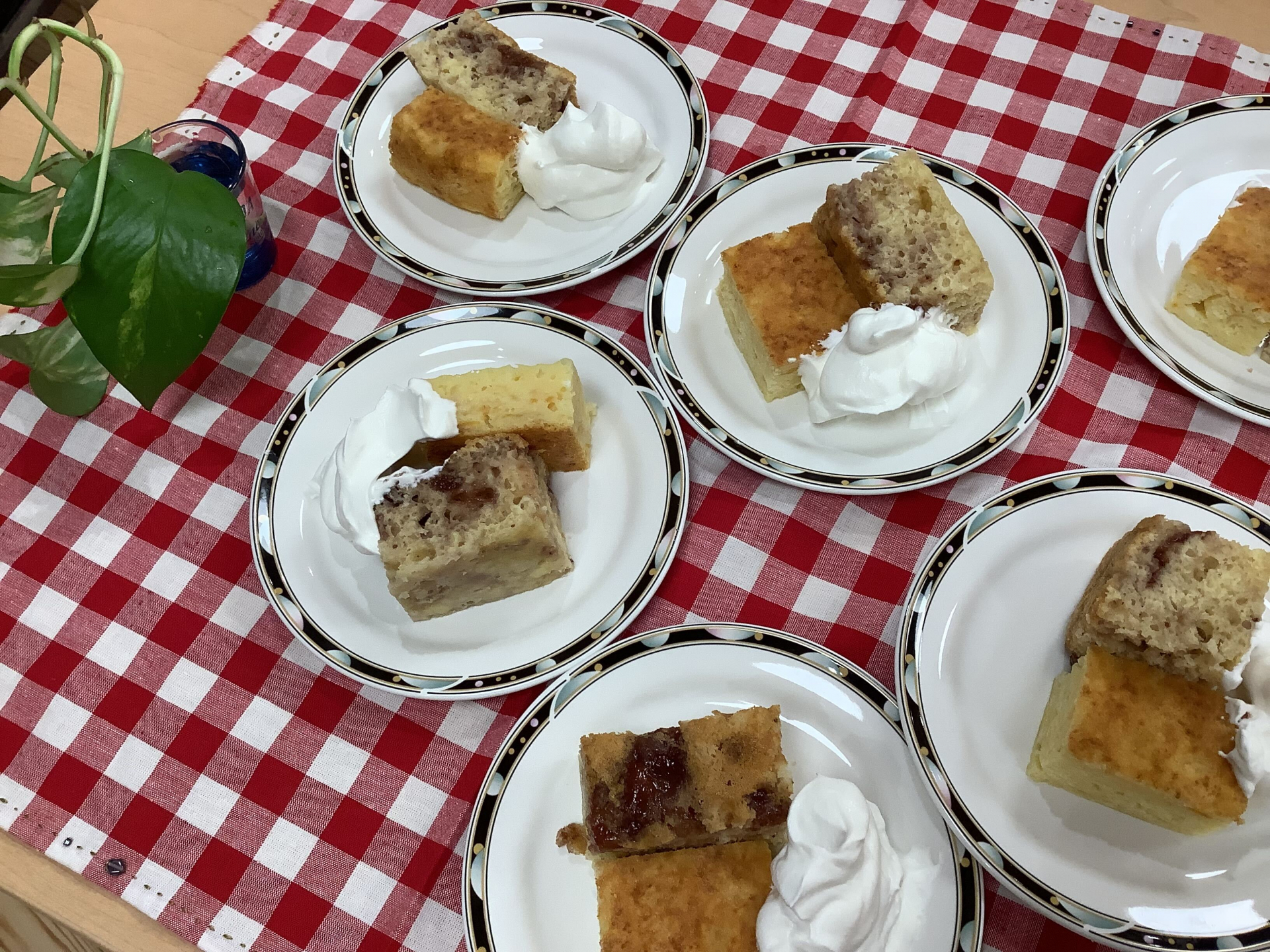 本日のおやつは、オレンジとストロベリーのケーキにホイップを添えてご提供しました。