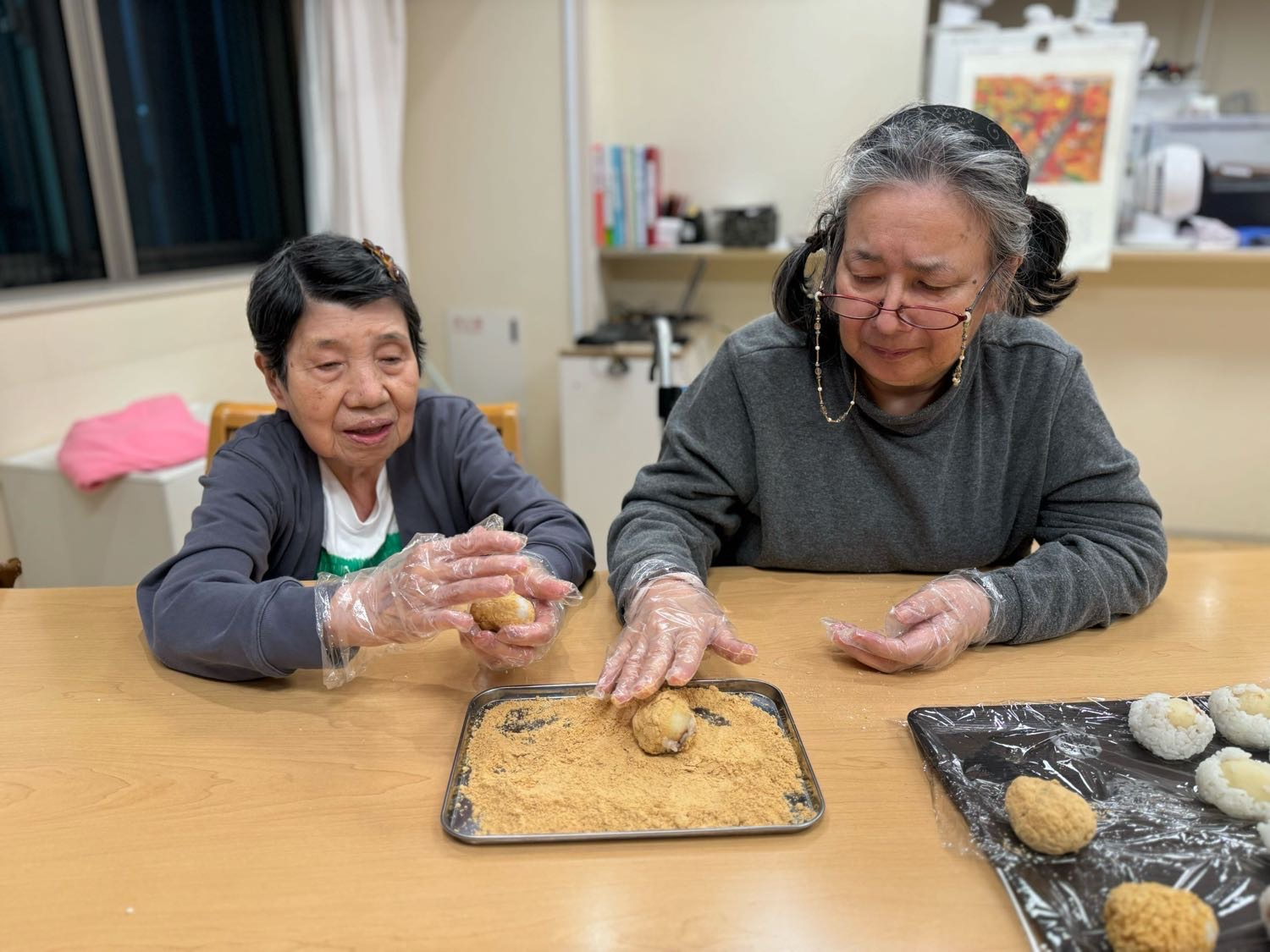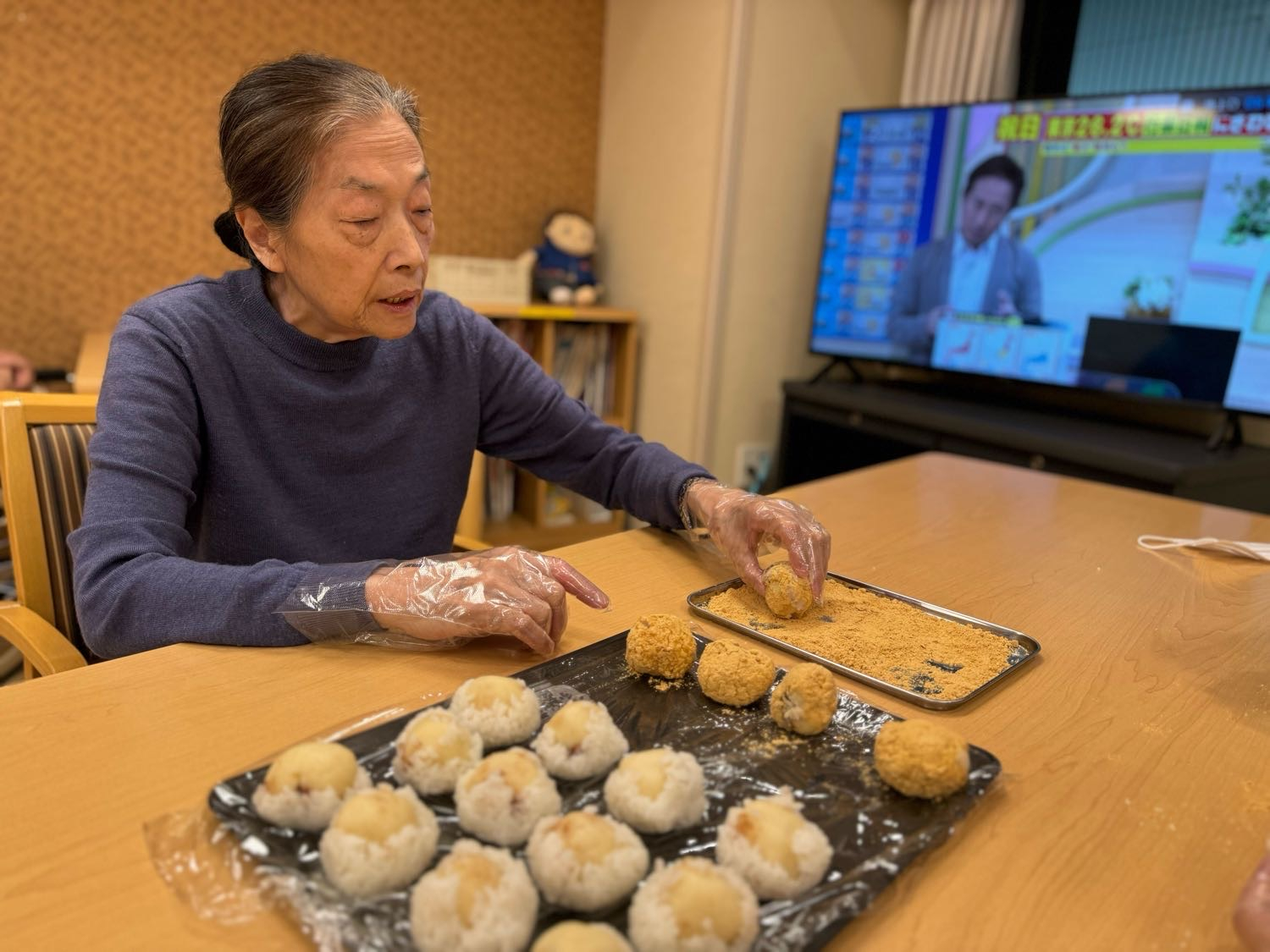利用者にもあんこを丸めるなどのお手伝いをして頂き、