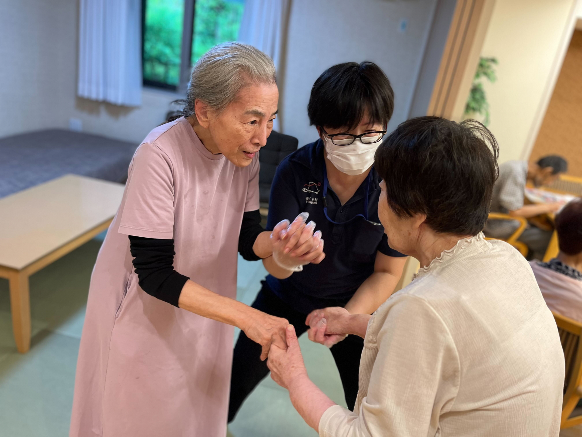 懐かしい歌を口ずさみながら、手をつないで輪になり、笑顔いっぱいの時間を過ごされました。