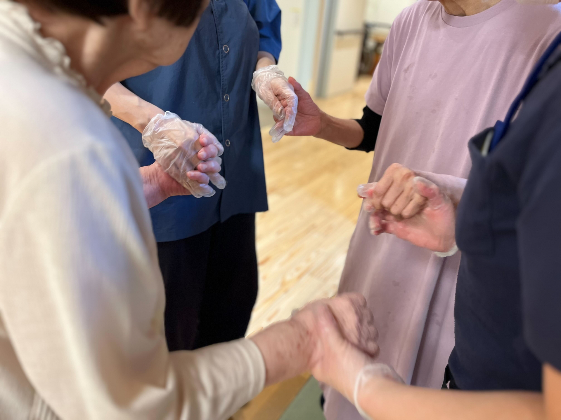 本日は、利用者様がスタッフと一緒に「かごめ~♪かごめ~♪」の昔遊びを楽しまれました。