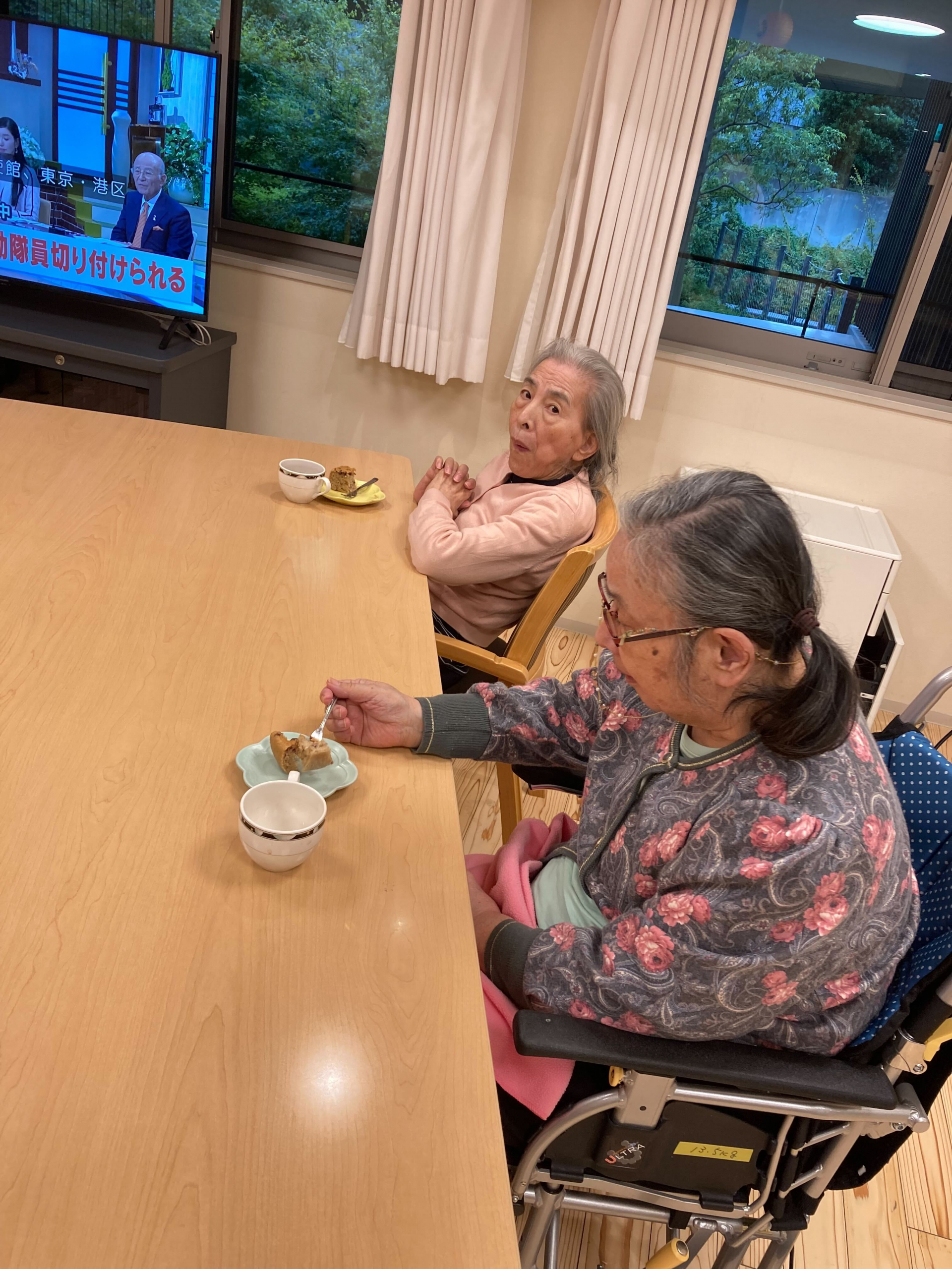 本日のおやつは、職員の手作りの小豆ケーキでした。