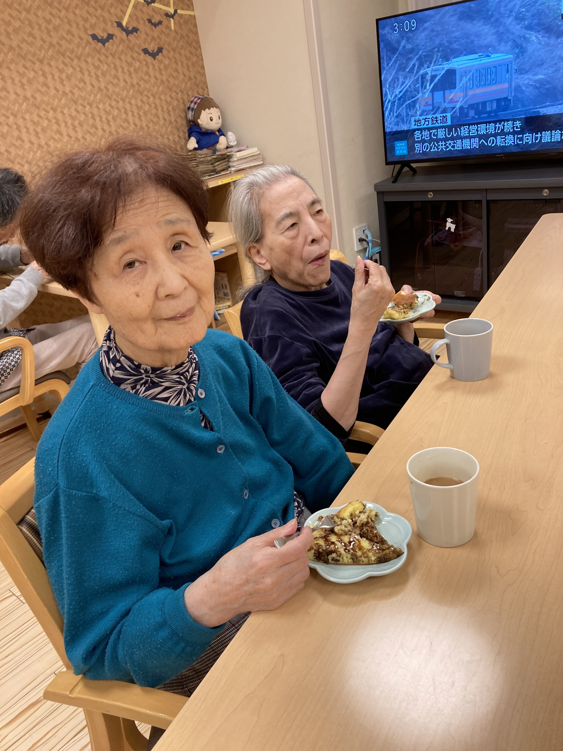 本日のおやつは、スタッフがホットケーキミックスを使って作った「マルタバ」です。