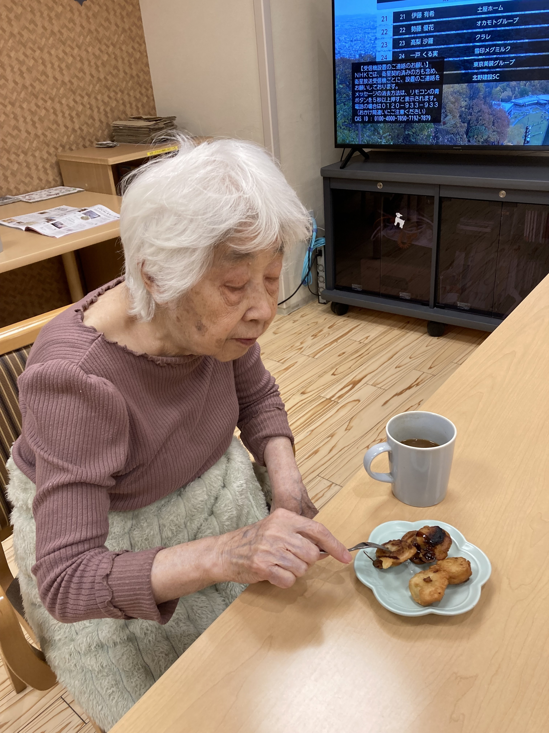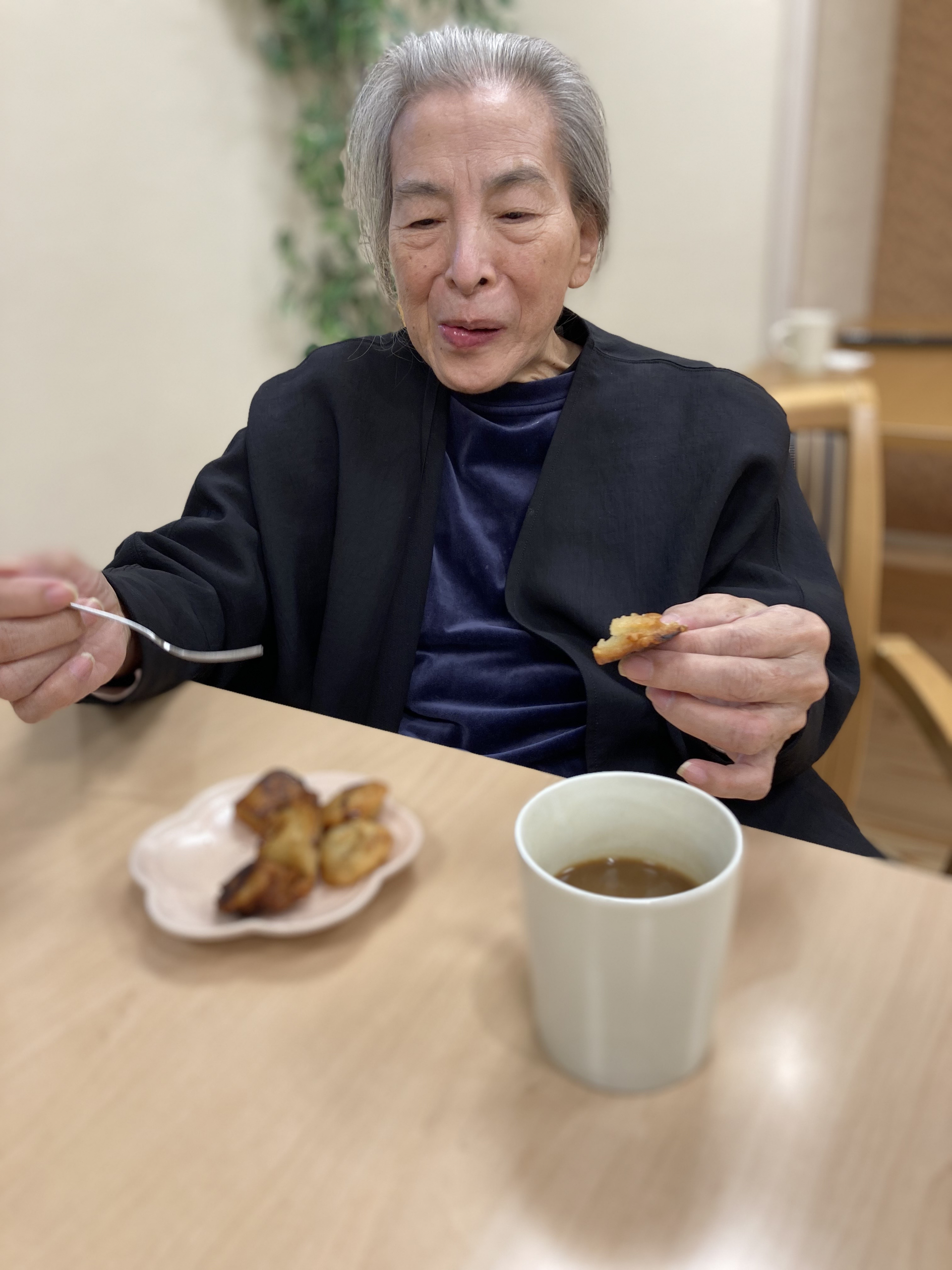本日のおやつは、インドネシア出身のスタッフが手作りした「ピサンゴレン(揚げバナナ)」でした。