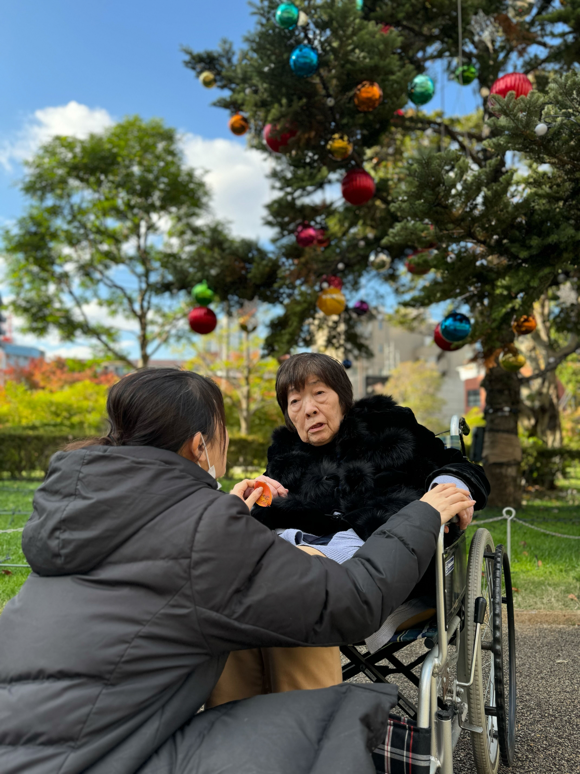 本日のレクでは、皆様と一緒に公園までお散歩に出かけました。