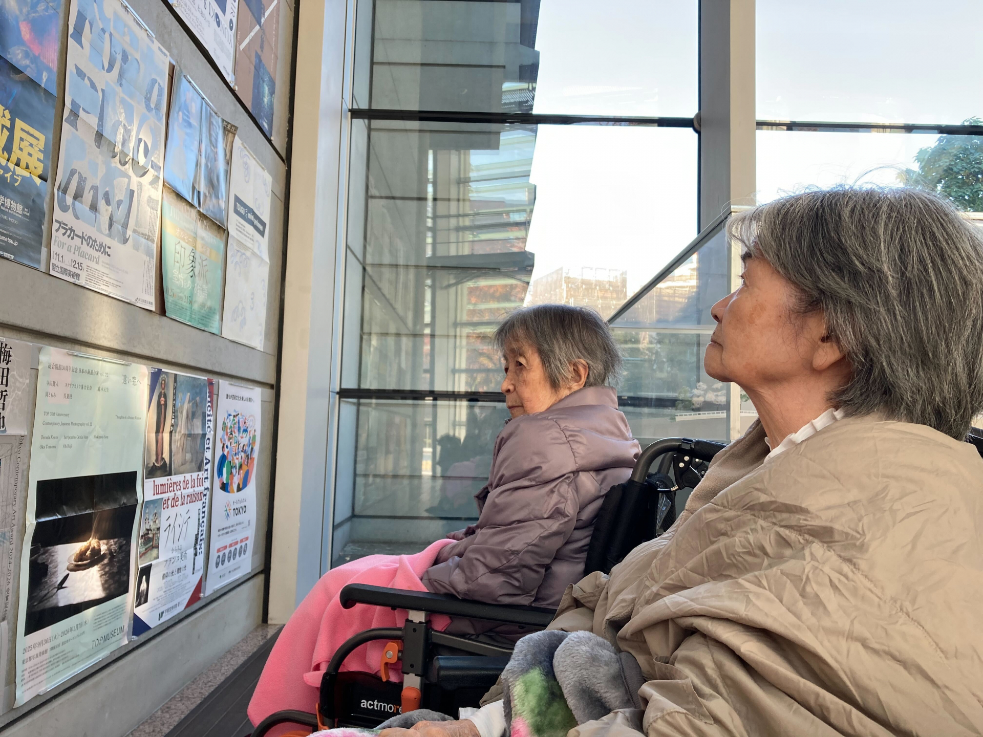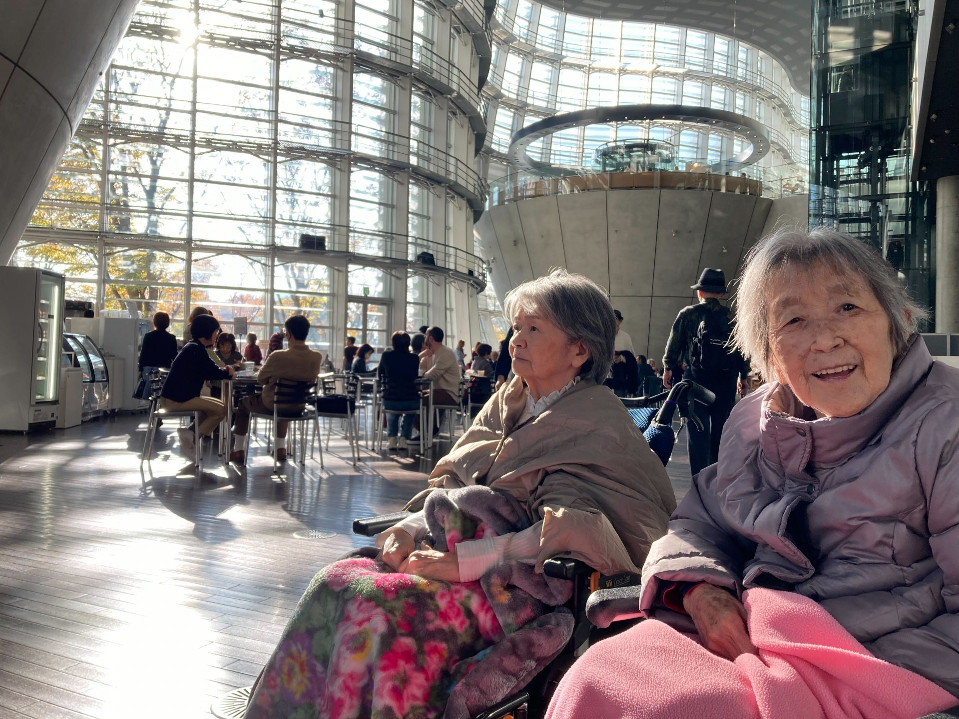 今日は、利用者様とスタッフで車いすを使用しながら、国立新美術館までお散歩に行ってきました。