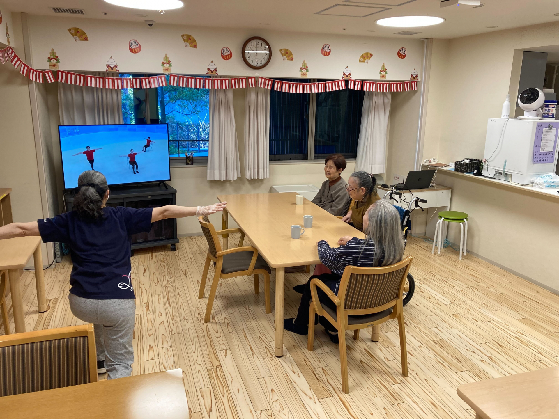 2026.01.08 活動報告 身体を動かす Tweet シェアする 朝のテレビ体操!難しい動作もありますが、できる範囲でスタッフと一緒にカラダを動かしてます 風がなかったので檜町公園までお散歩しました。 きょうのおやつはプリン😋🍮 優っくり小規模多機能介護乃木坂 田中 前の記事 2026.01.08 活動報告 獅子舞来たる 次の記事 2026.01.07 活動報告 カレーの日 一覧へ戻る