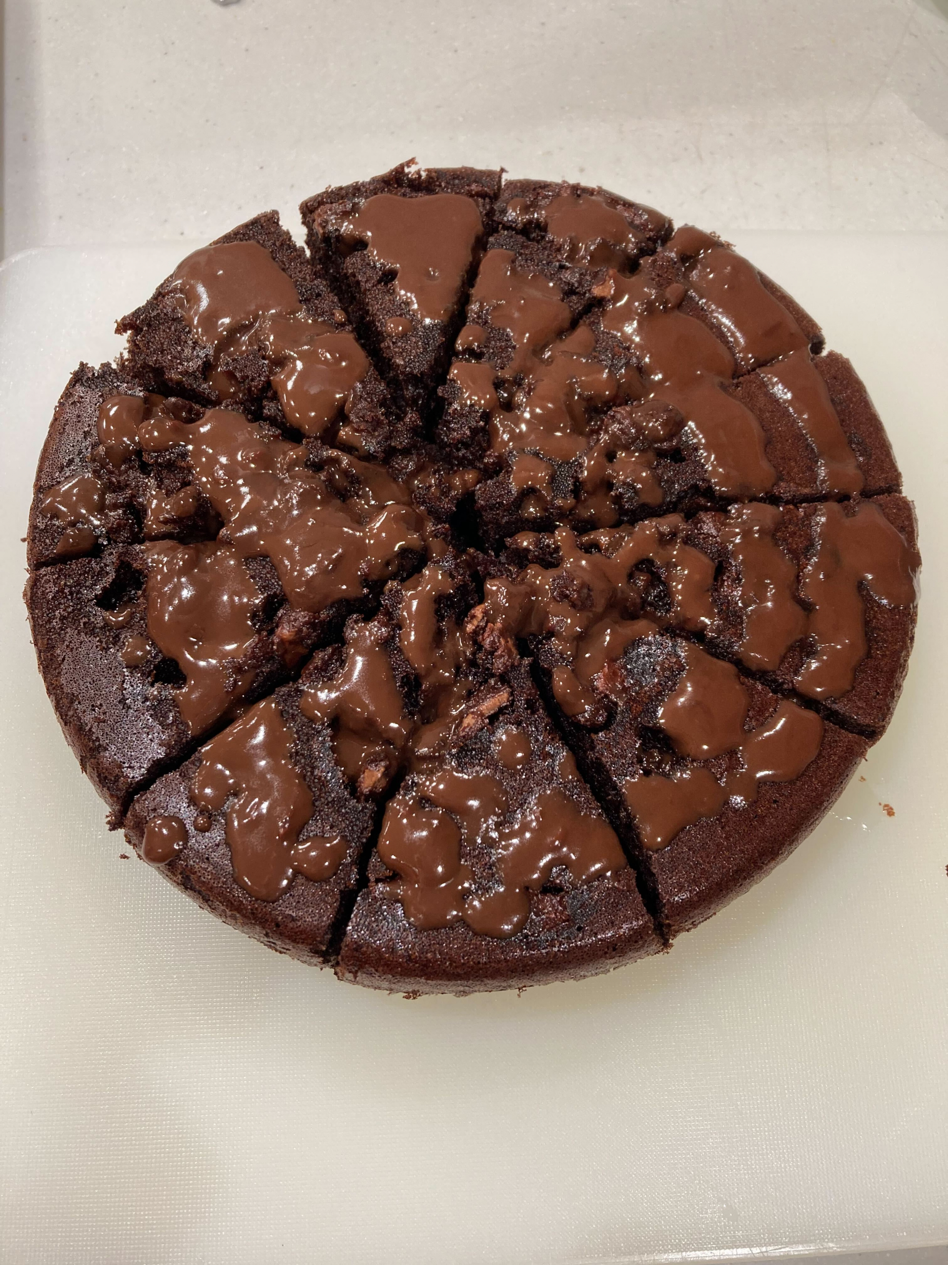 今日のおやつは、ココアパウダーを使ったケーキに、溶かしたチョコレートをトッピングした。