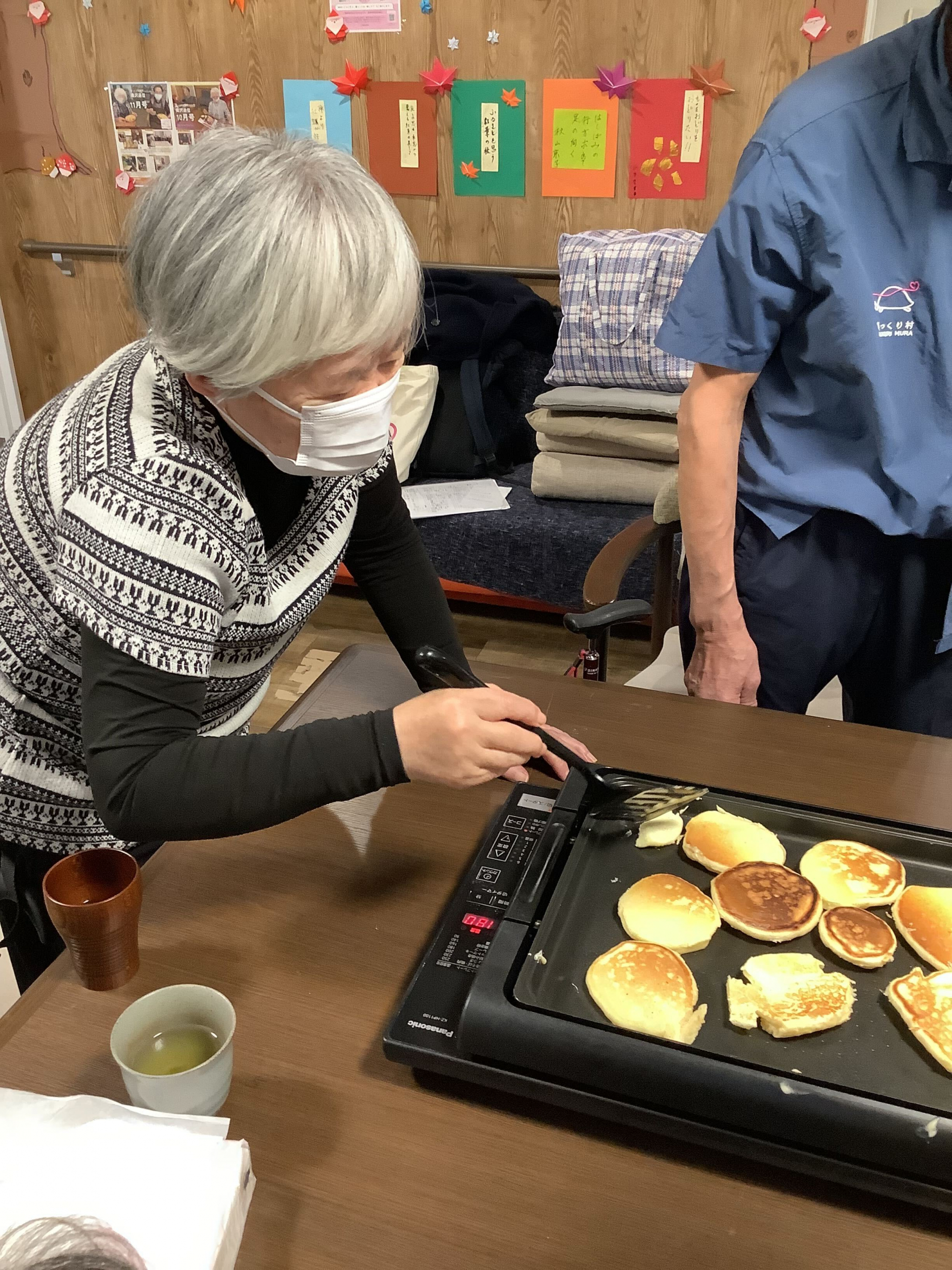 先日、皆様とおやつの時間にホットケーキ作りをしました♪