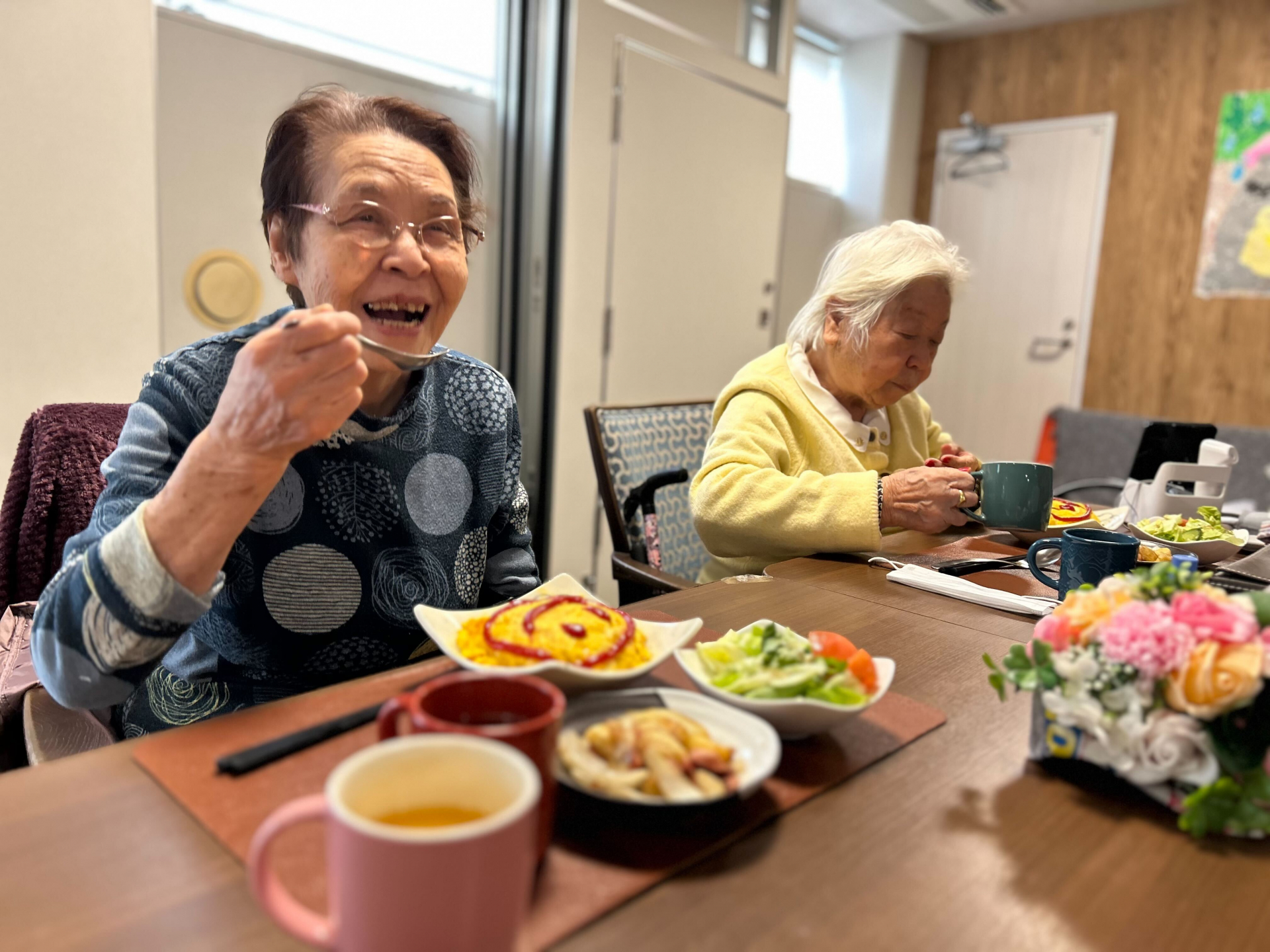 とある日の昼食メニューがオムライスだった為、にこちゃんマークを描いてご提供しました♪