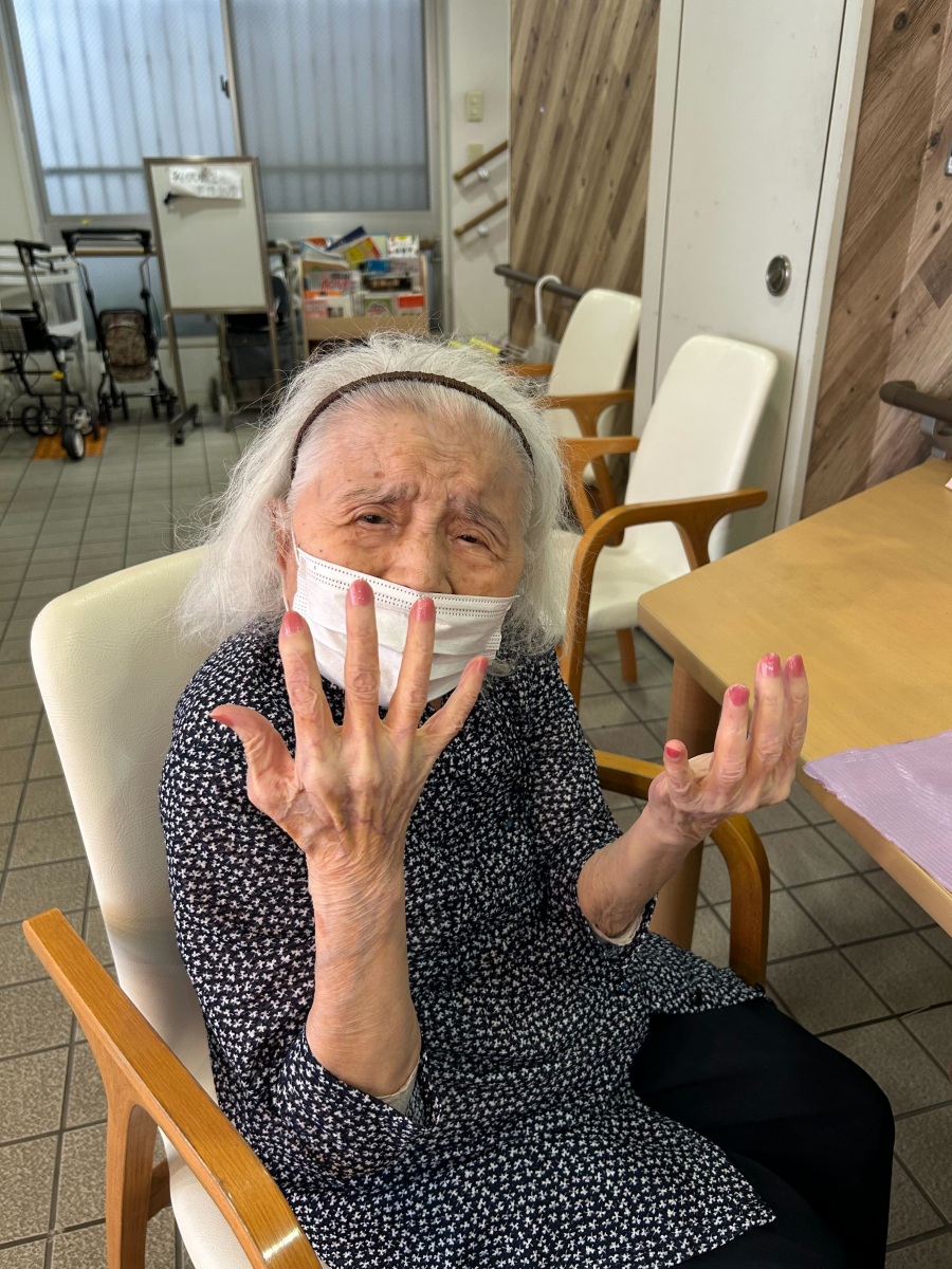 嬉しそうに爪を見せて記念撮影(/・ω・)/♪