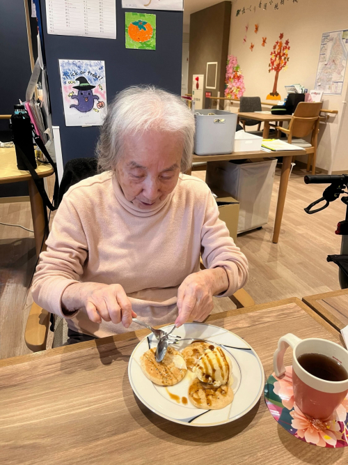 2025.11.12 (墨田区両国で楽しむ高齢者レク)できたてパンケーキで笑顔に 活動報告 #優っくり看護小規模多機能介護両国 #レクリエーション #奉優会 #介護 #福祉 #デイ #sumida #すみだ #体操 # 優っくり村両国 #レク #優っくり村 #おやつレク