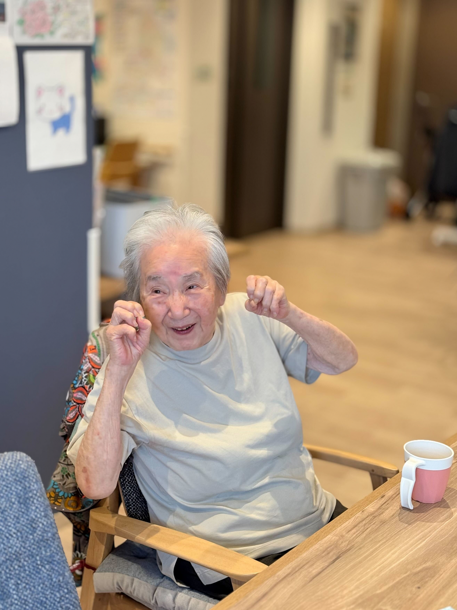 今日も素敵な笑顔で、まわりを明るくしてくれました。スタッフと一緒に元気ポーズ!これからも楽しい時間を重ねていきます❣