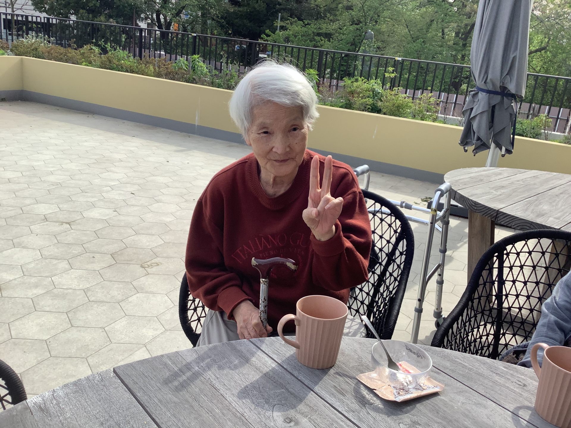 今日はいいお天気でしたので、テラスでおやつの時間となりました(^^)/