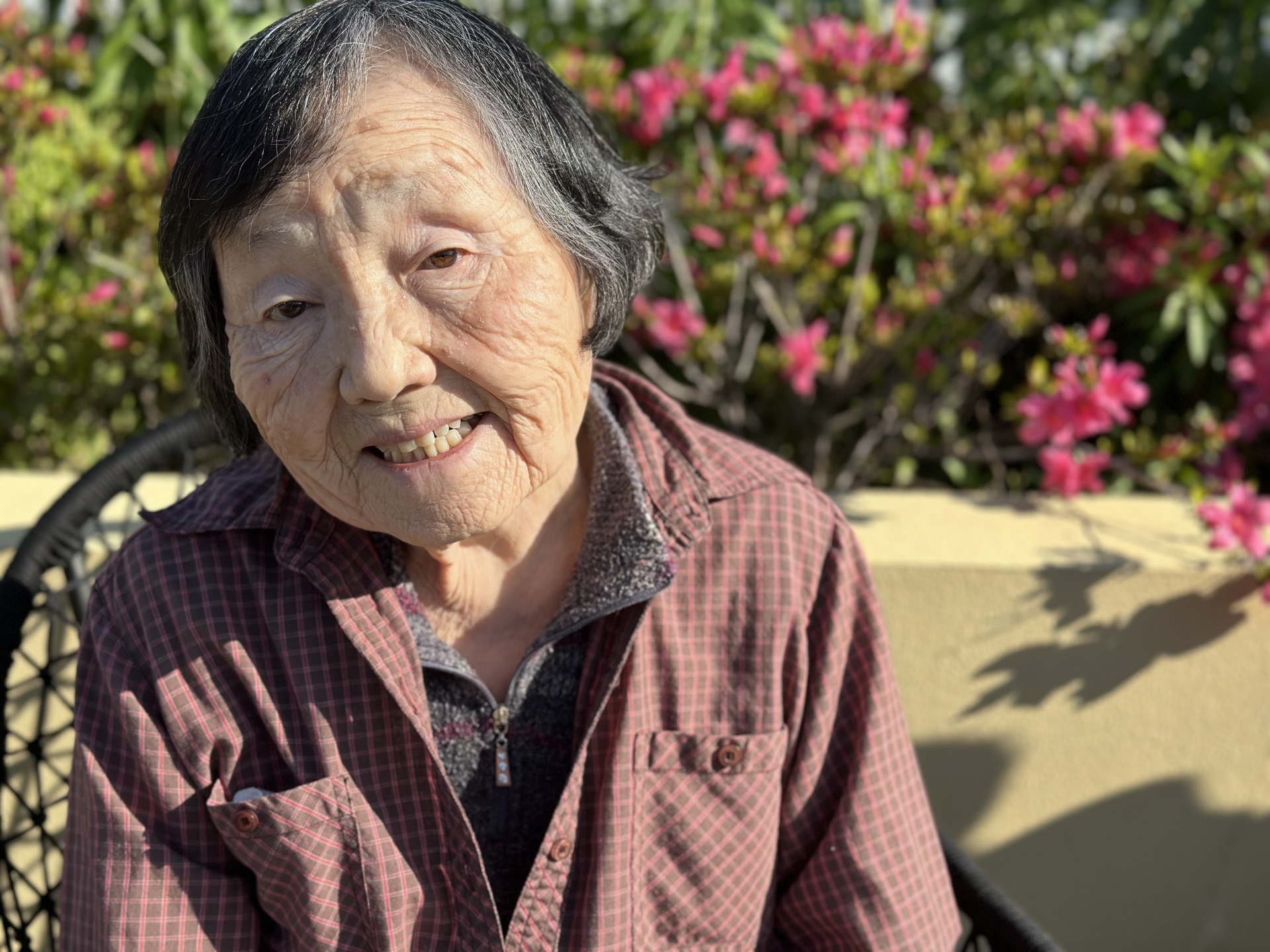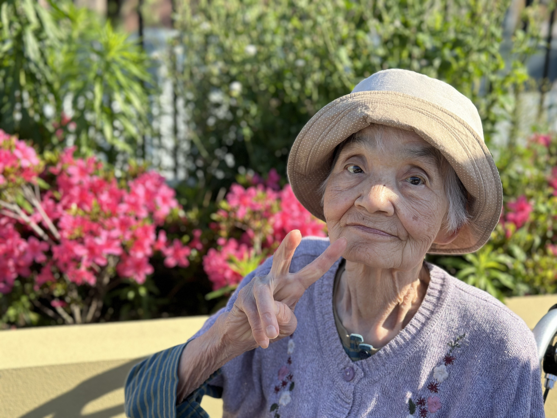 つつじをバックにピースサインをして下さるM様♪