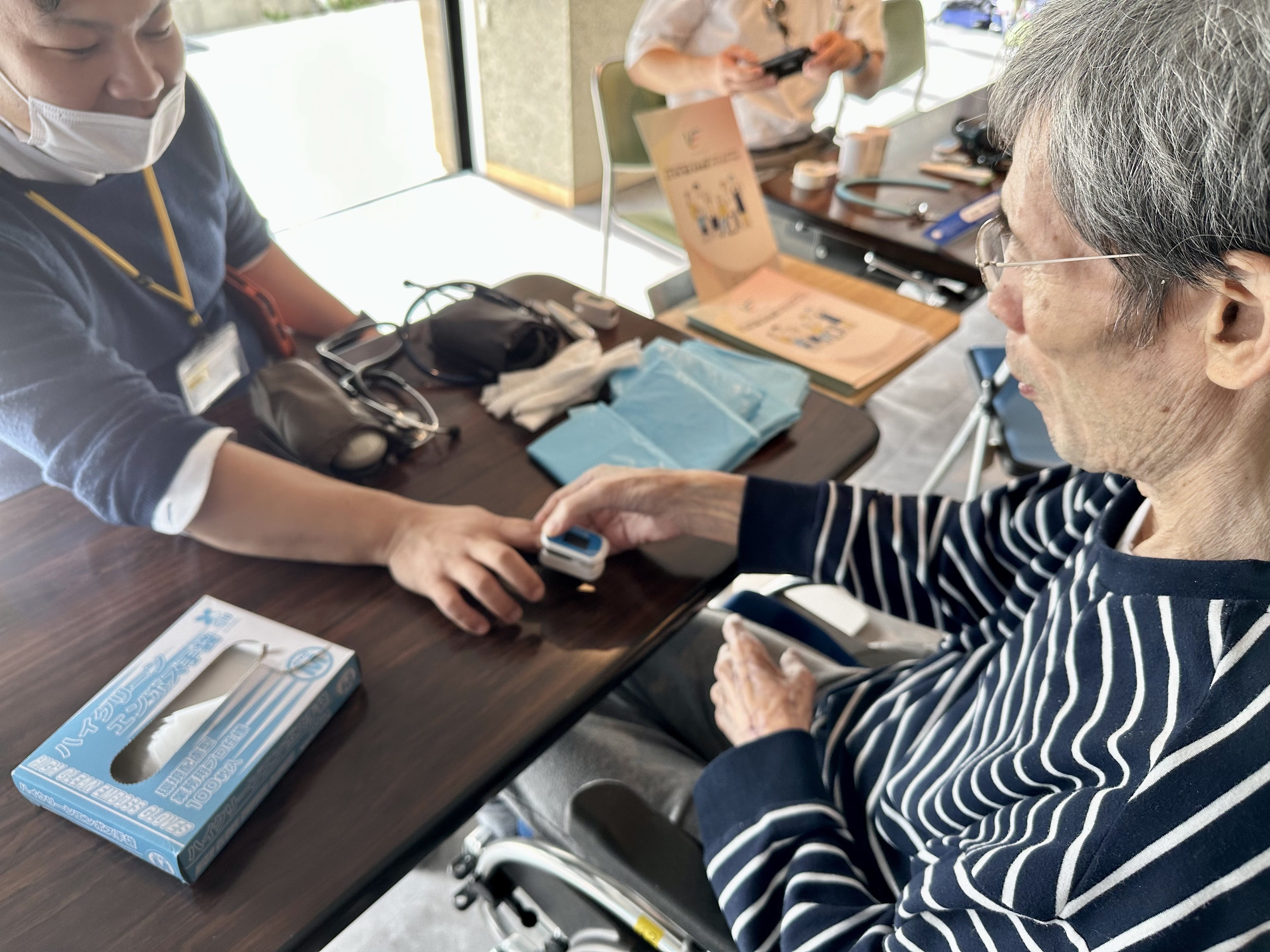 看護師さんのお仕事体験コーナーでは、普段とは逆の立場に立ってバイタル測定をするI様♪