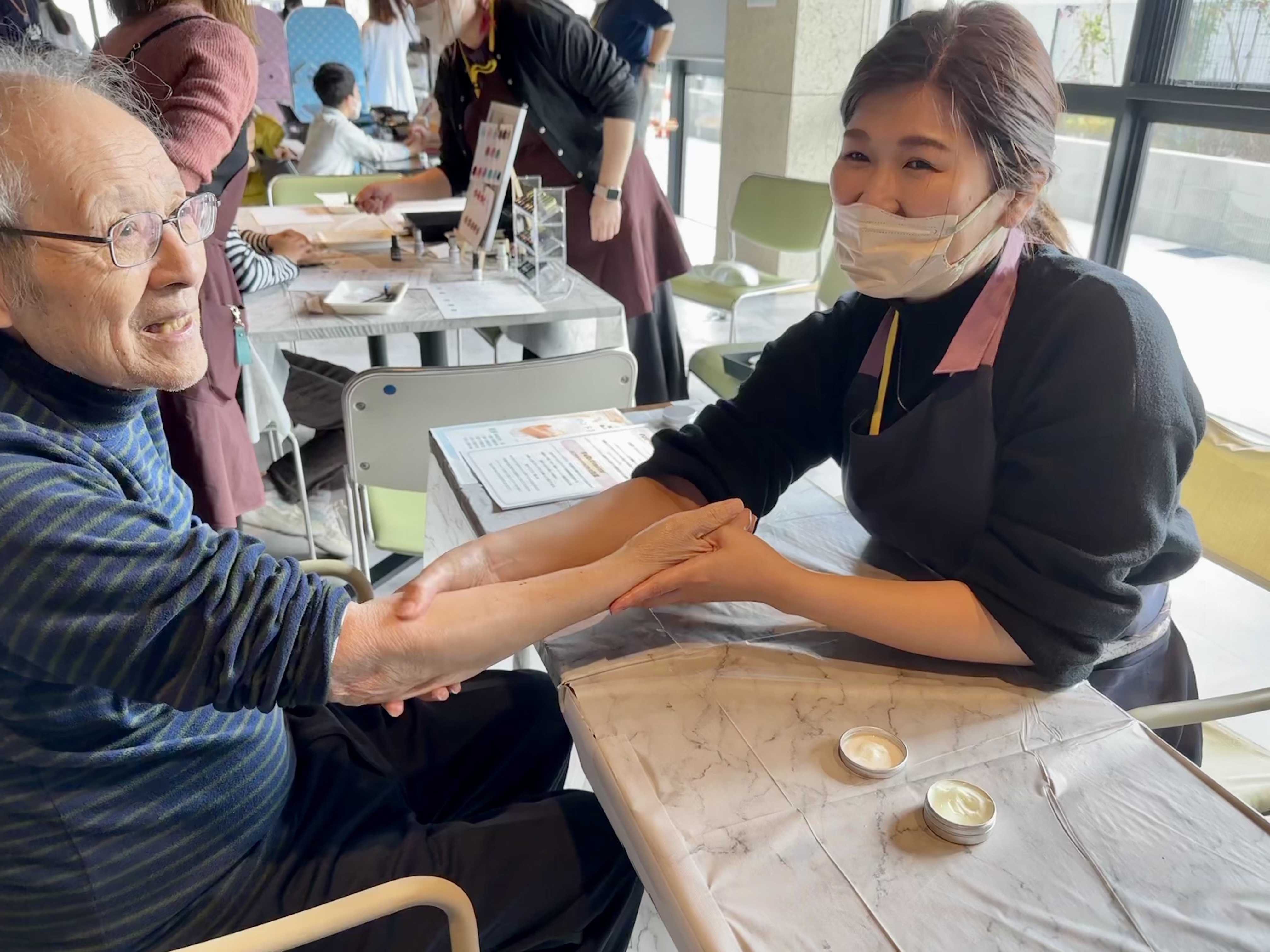 もちろん皆さんでハンドマッサージを受けさせていただき、「こんなにツルツルよ!」「見て、つやつやでしょ!」等大好評でした!
