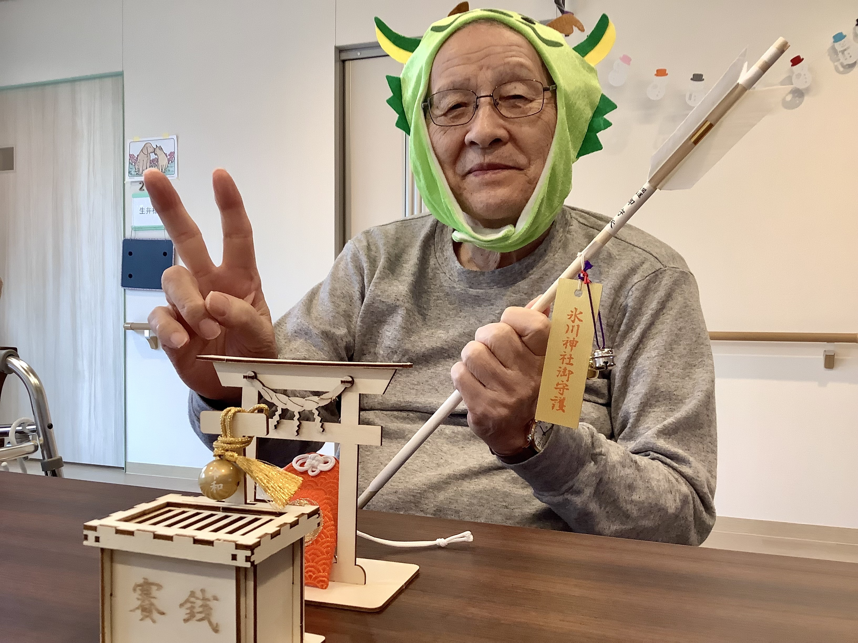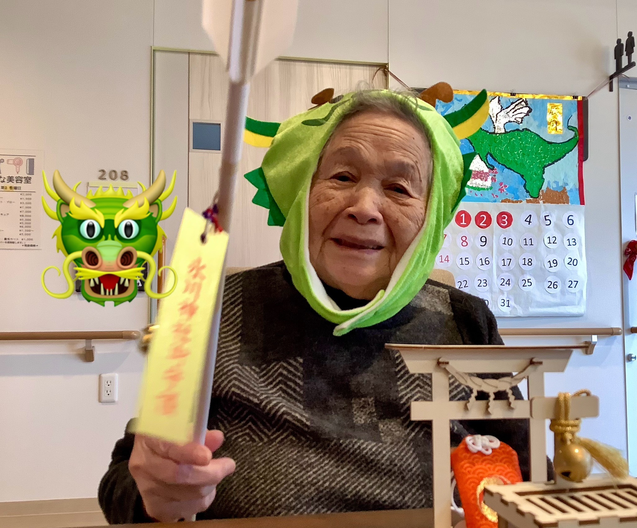 今日は皆さんで正月ならではの『辰年』にちなんだ格好をして、楽しく記念撮影をしました♪
