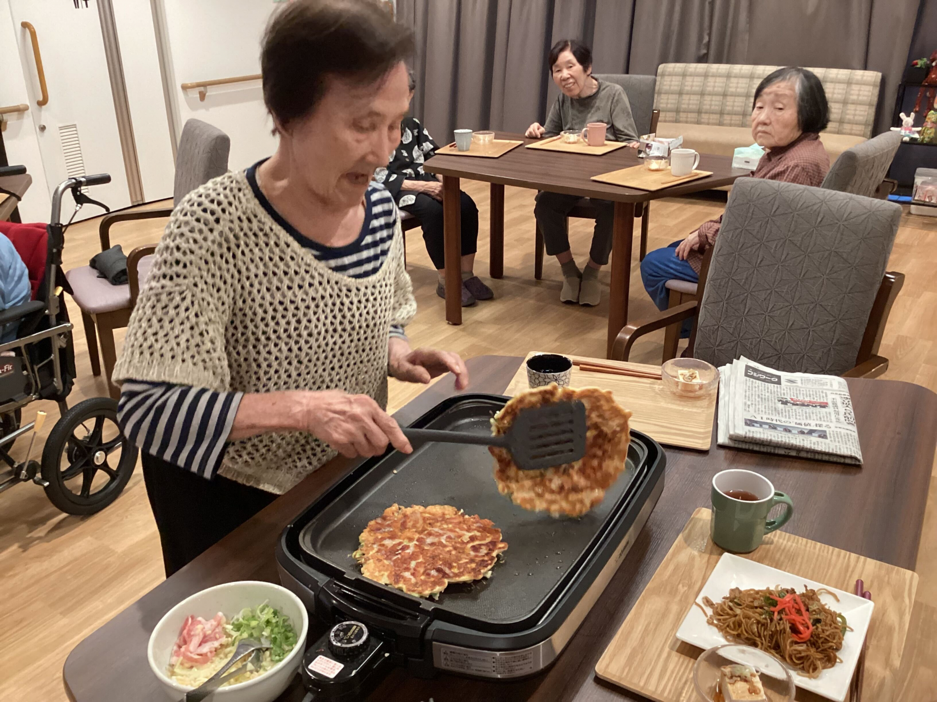 2025.09.24 活動報告 週1回の手作りでのお好み焼きと焼きそば😋😋 Tweet シェアする みんなの分も作ってくれたAさんありがとうございました😍 お好み焼きも焼きそば美味し😍😋 また、作りましょうね😍 毎週水曜日は手作りでみんな楽しみですね。 1E イ 前の記事 2025.09.27 活動報告 🎊秋祭り🎊 次の記事 2025.09.24 活動報告 今日はテラスでおやつ【フルチェー】 一覧へ戻る