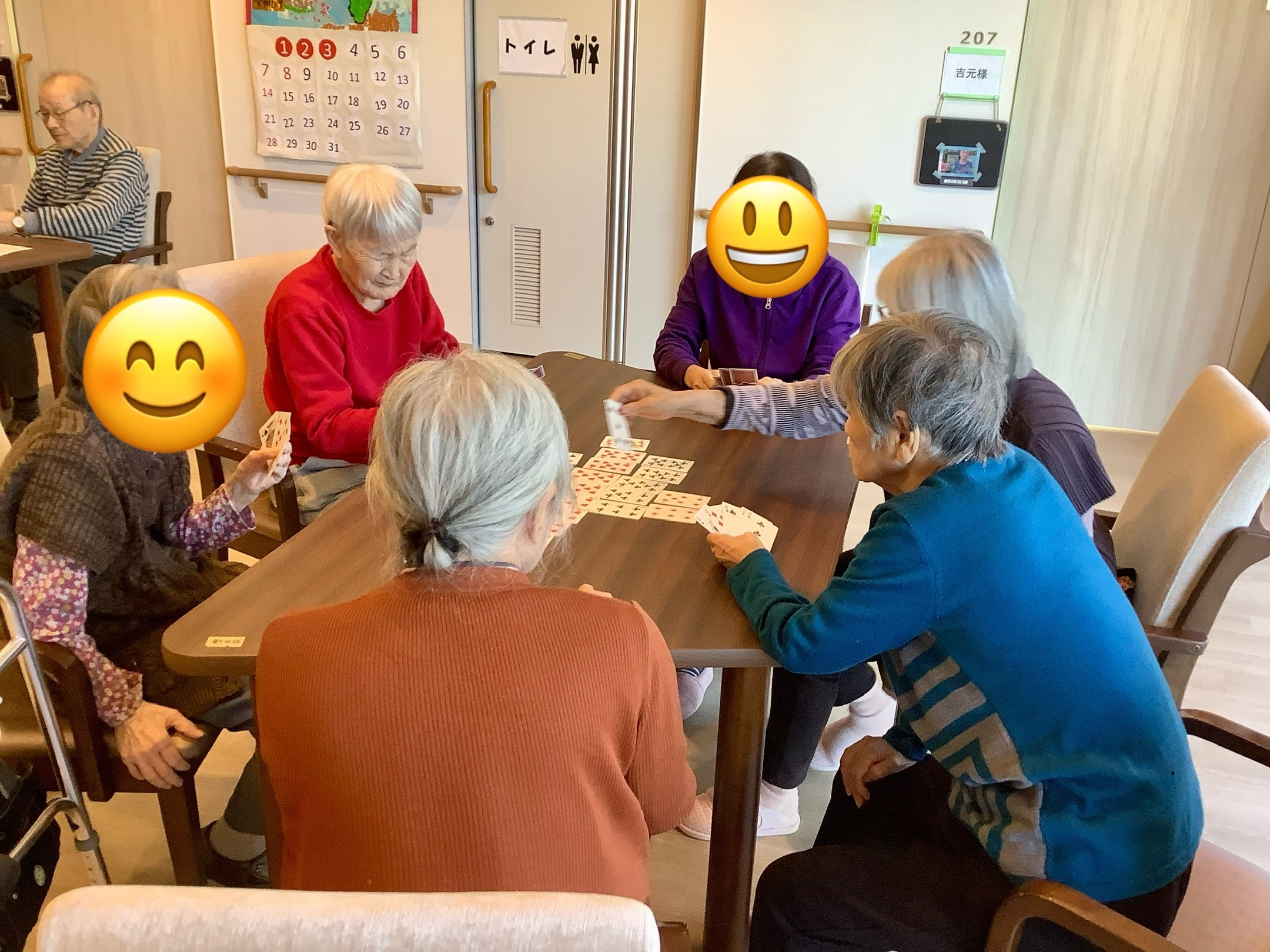 今日は女子はトランプ大会、男子は脳トレと自然と行うレクが分かれた日となりました(^^♪