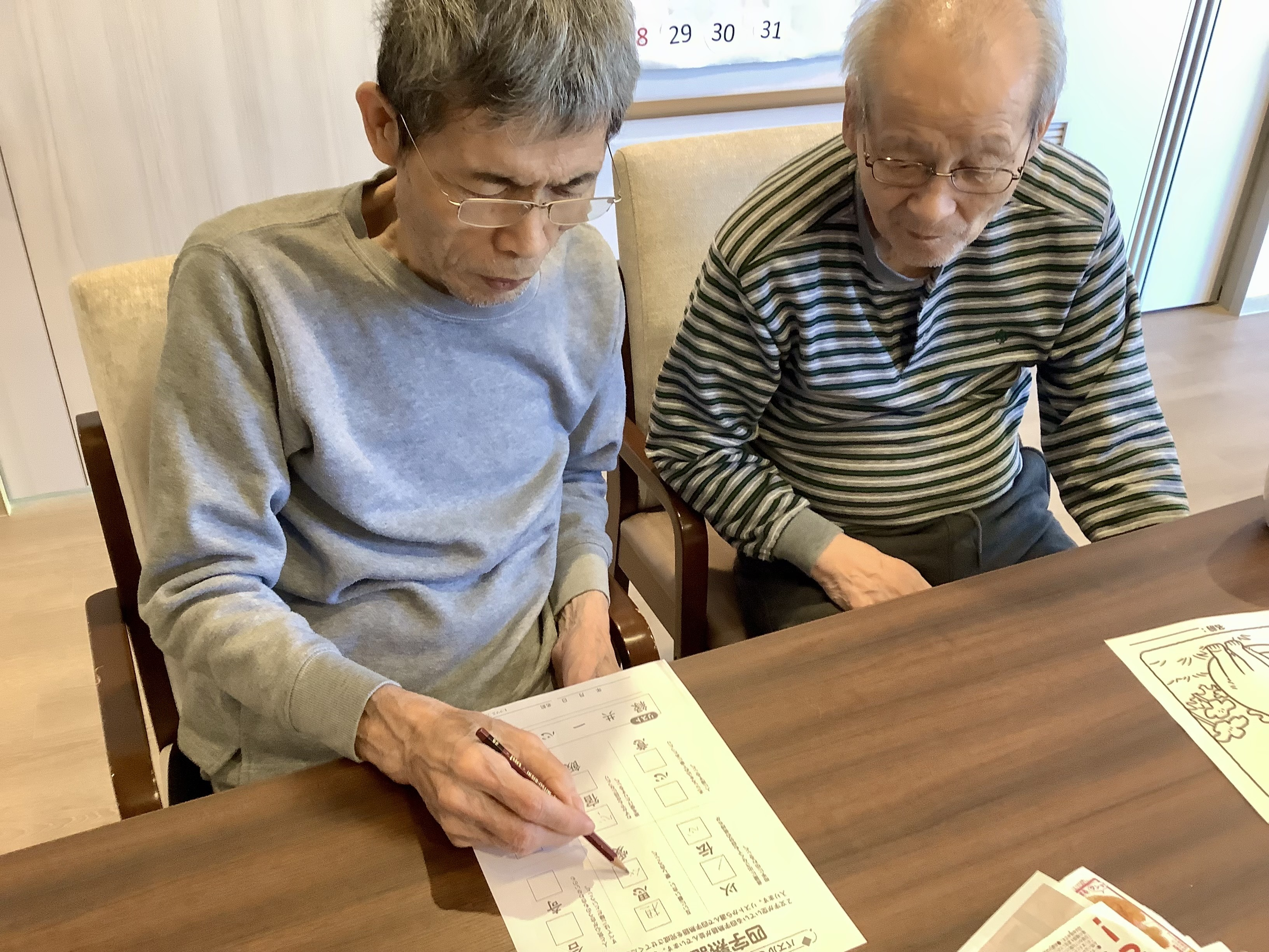 男子陣は一枚の脳トレプリントをお二人で相談しながら取り組まれています♪