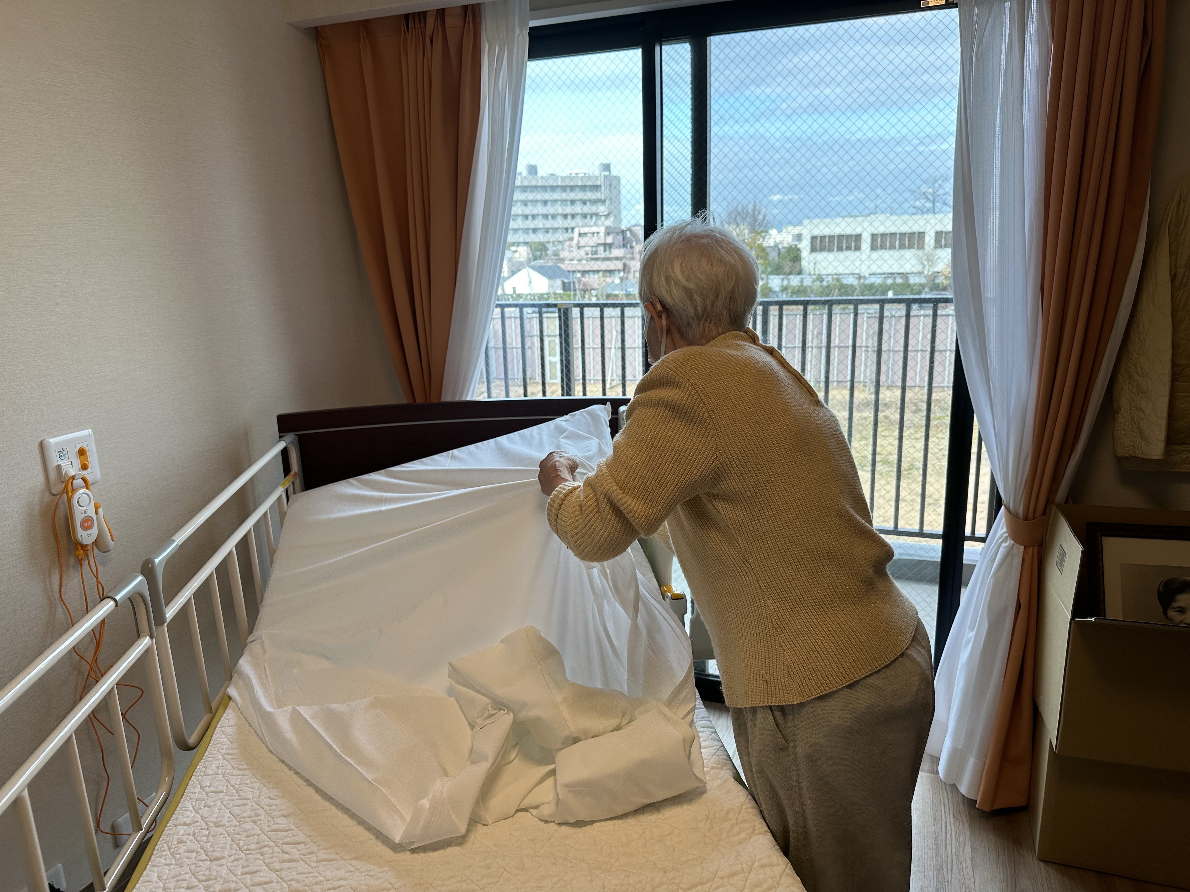 お部屋の喚起をしながら、シーツ交換とお掃除をして下さるI様♪