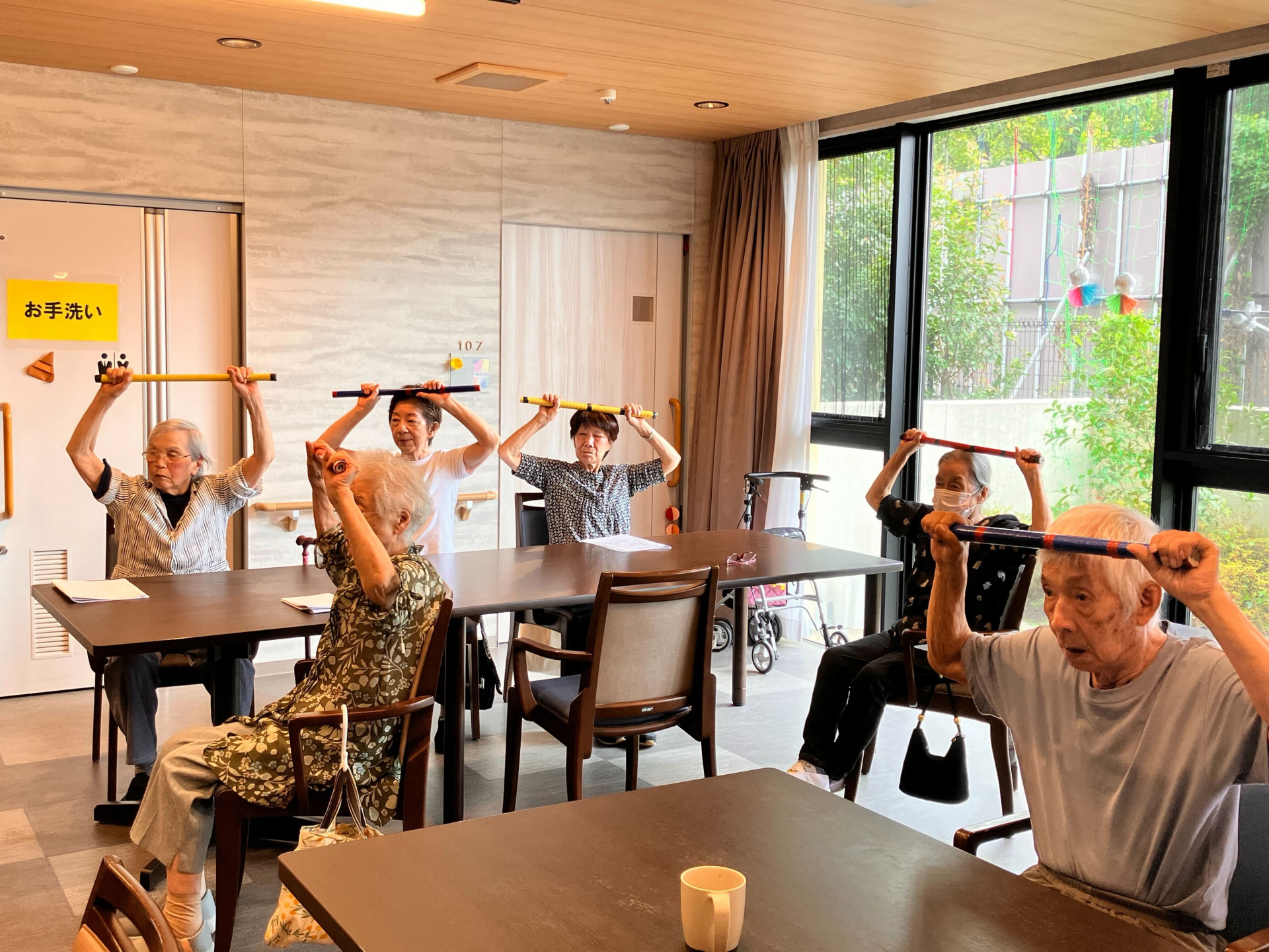 今日の体操は棒体操でした(*^^)v