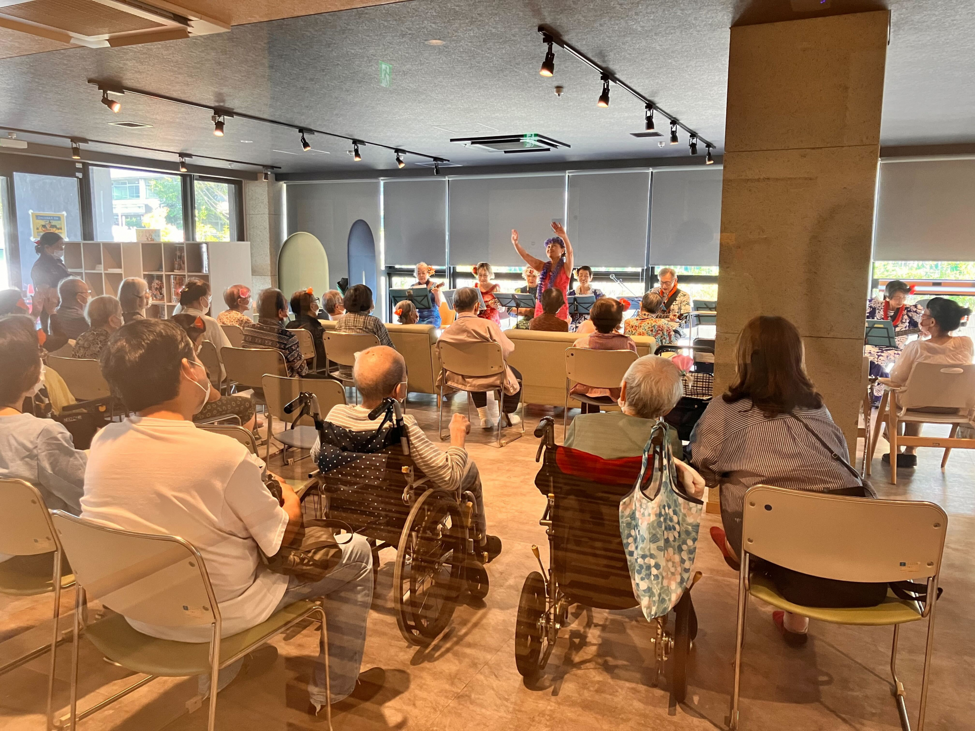 共有スペースでウクレレとフラダンスを鑑賞しました!
