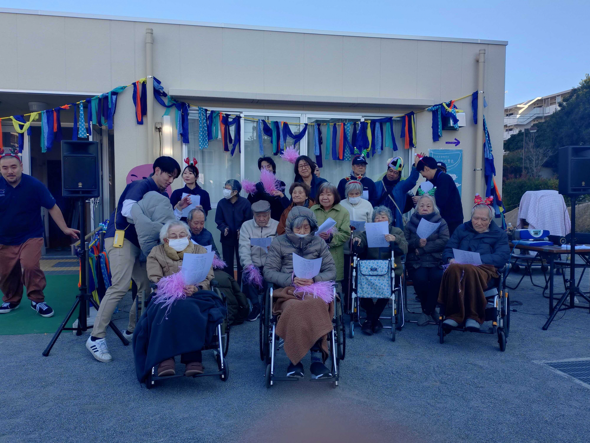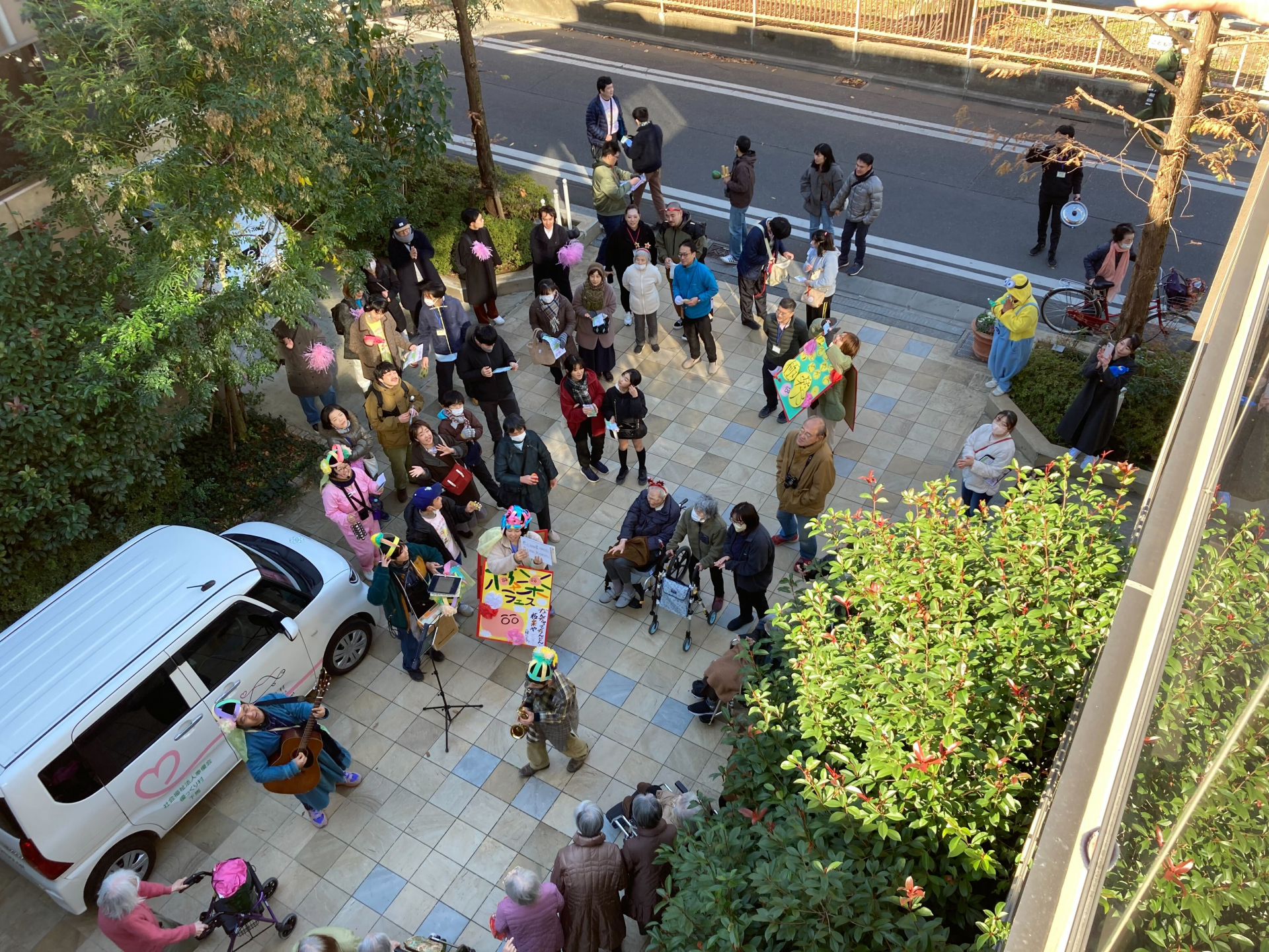 また、12時過ぎにはチンドン屋さんが当施設の駐車場まで来てくださり、素敵な音楽を演奏してくださいました。