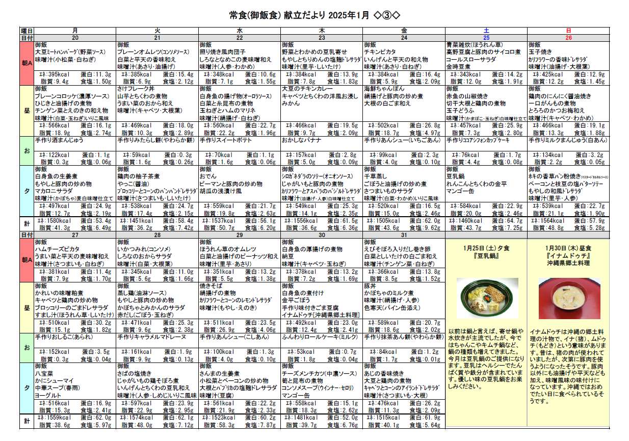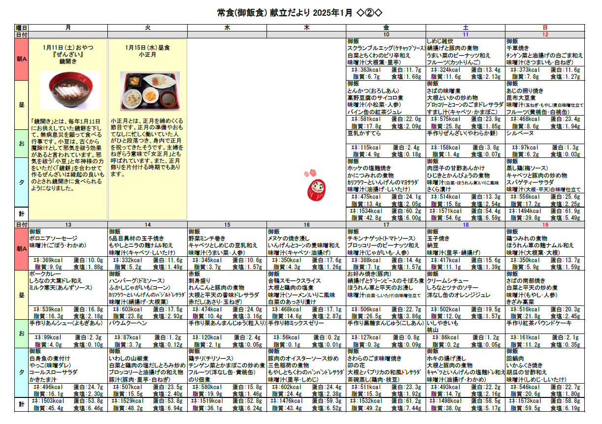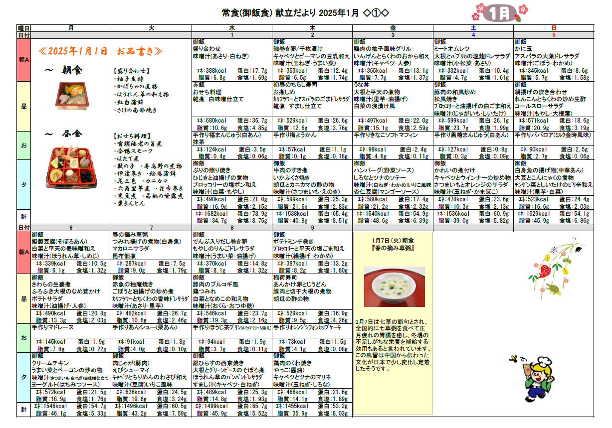 2024.12.30 お食事 1月の献立♬ Tweet シェアする 1月の献立をお伝えします☆彡 優っくり村下馬 杉原 前の記事 2024.12.30 お食事 お正月飾り(^^♪ 次の記事 2024.12.29 お食事 家事☆② 一覧へ戻る