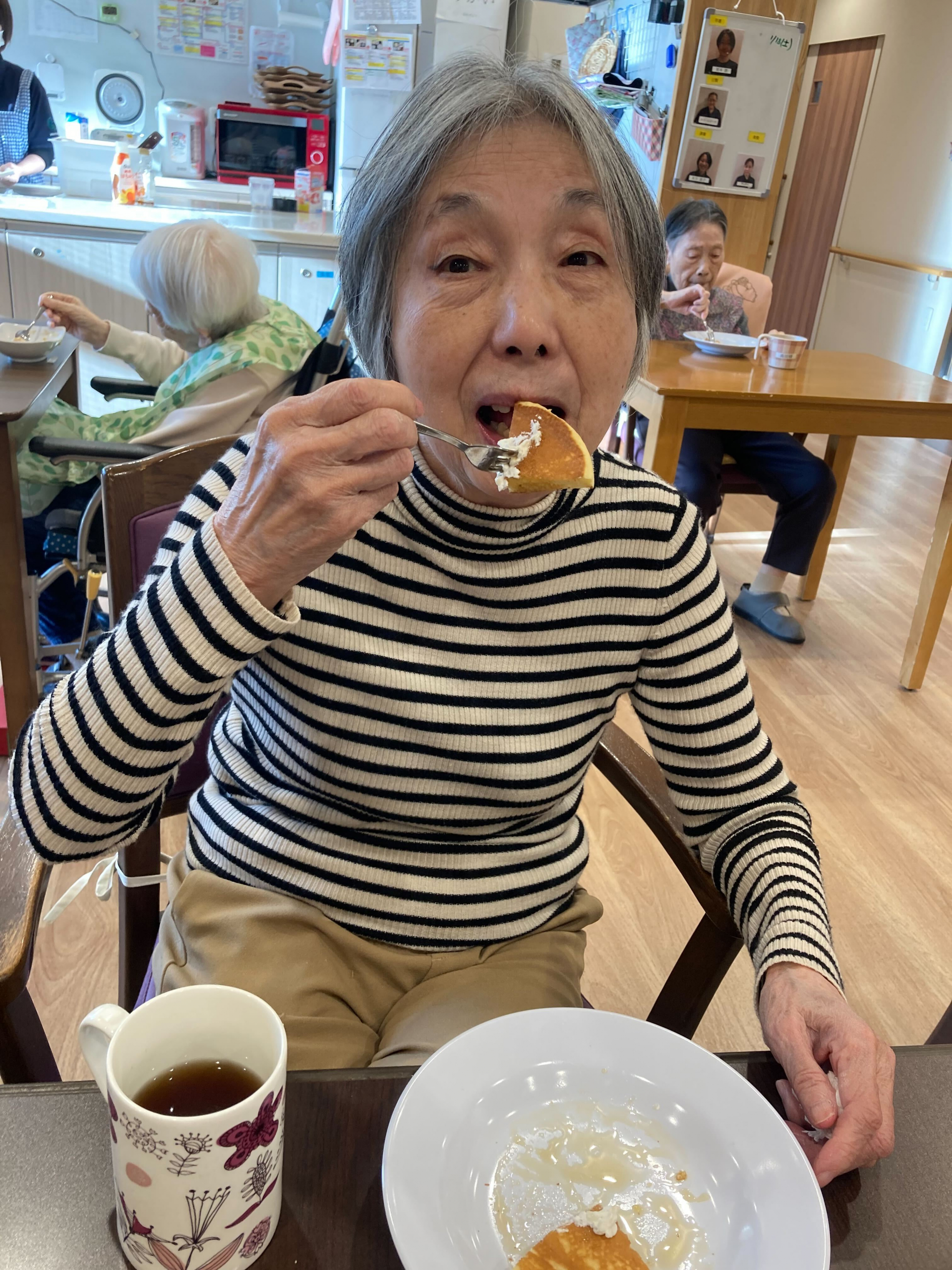 お好きなトッピングとして、ホイップクリーム、メープルシロップ、またははちみつをのせて召し上がっていただきました(*^-^*)