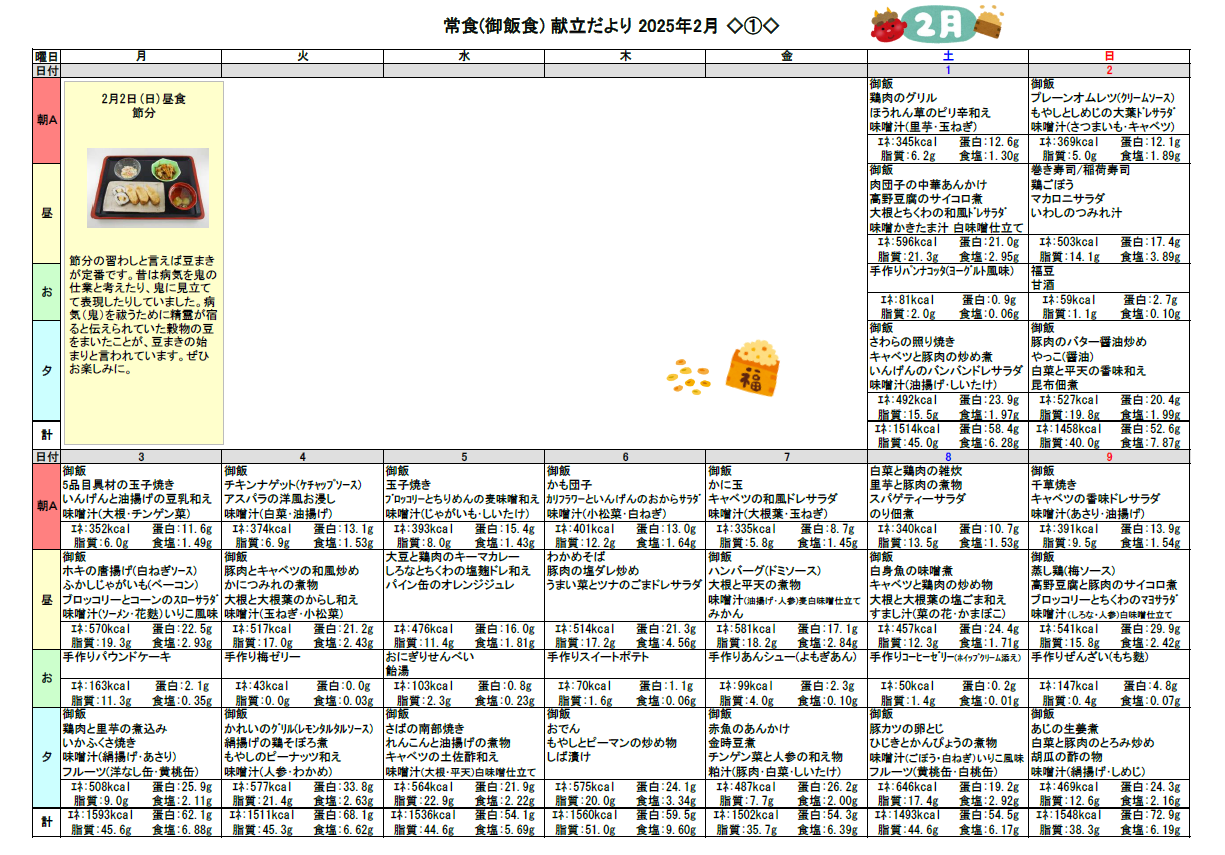 2025.01.31 お食事 2月の献立♬ Tweet シェアする 2月の献立をお伝えします☆彡 優っくり村下馬 杉原 前の記事 2025.01.31 お食事 訪問美容☆ヘアカット 次の記事 2025.01.30 お食事 ハンドクリーム☆作り 一覧へ戻る