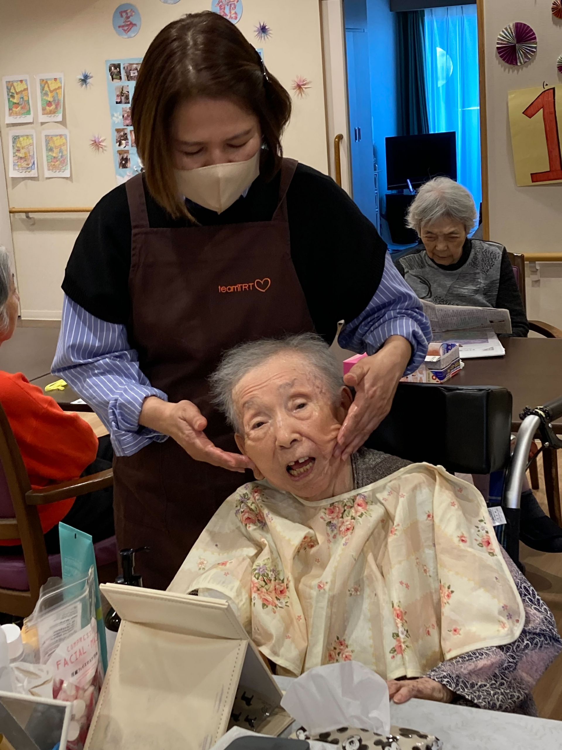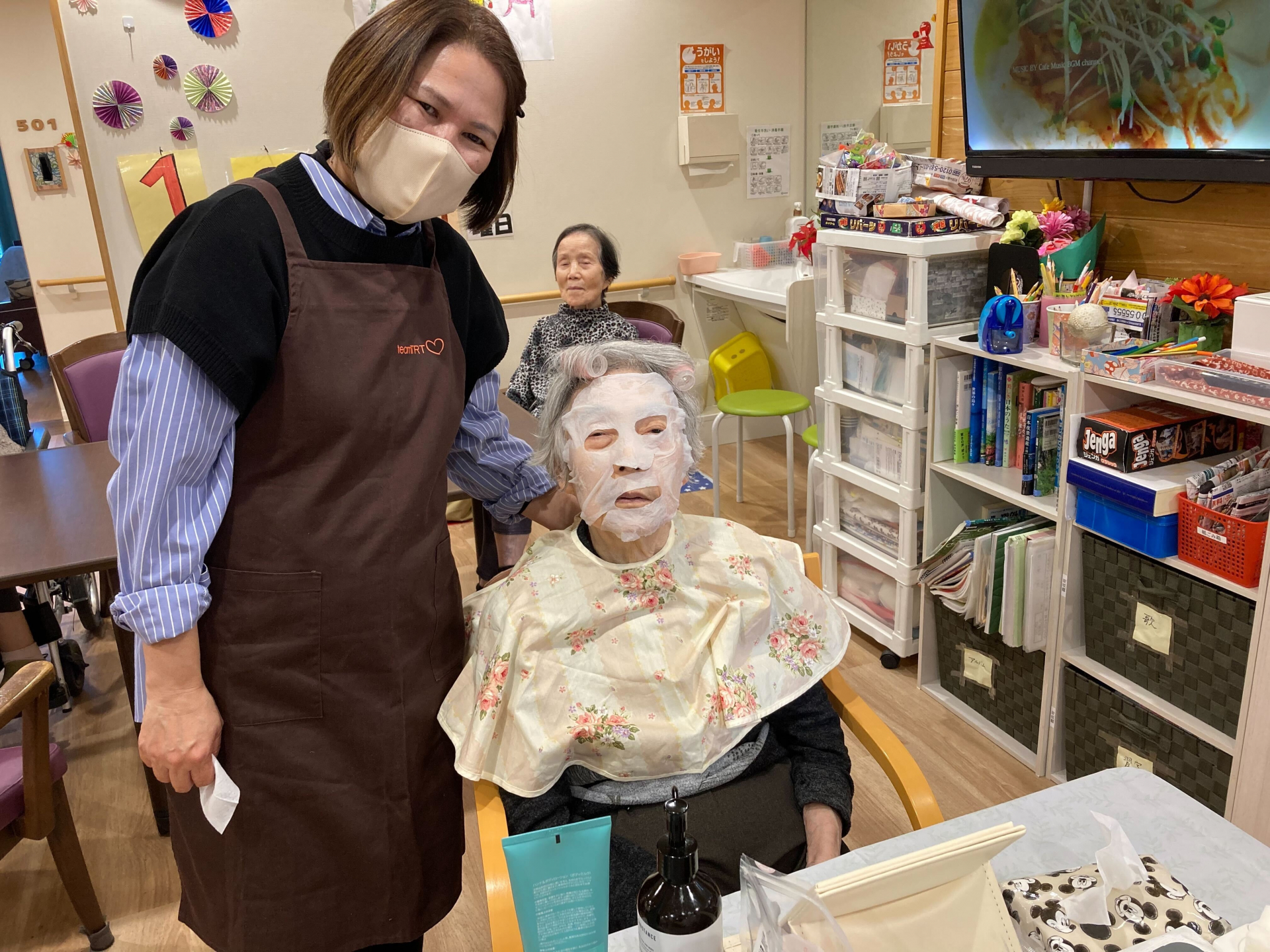 2025.02.10 活動報告 エステティック(*^-^*) Tweet シェアする 今日は美容レクがありました。 美顔マッサージの後、パックをしてもらいました! 皆さま以前にも増して美しくなられました(*^-^*) 永遠の乙女でありたいですね♬ 5丁目 原 前の記事 2025.02.13 活動報告 折り紙レク☆彡 次の記事 2025.02.09 活動報告 手作り、りんごケーキ☆彡 一覧へ戻る