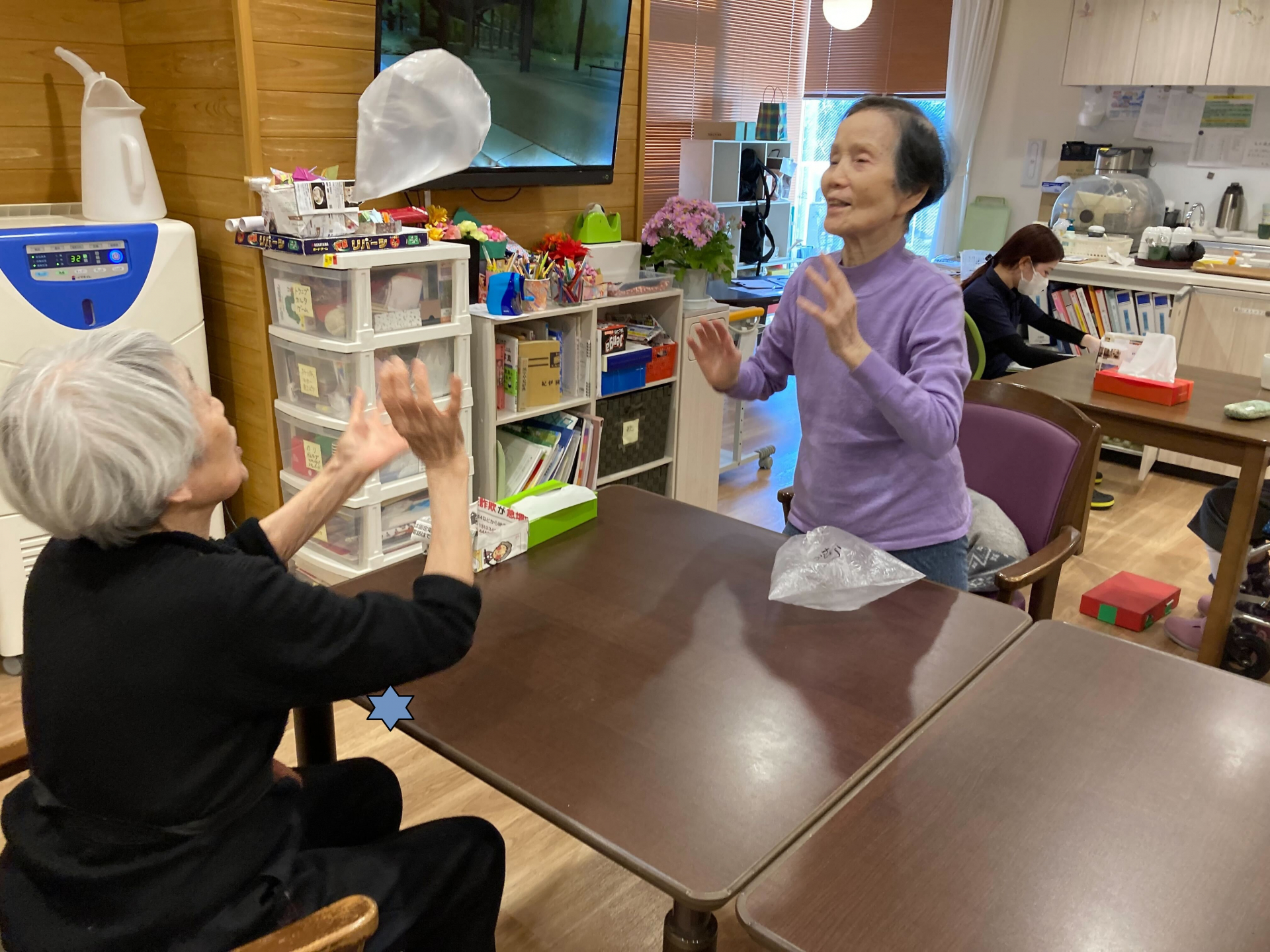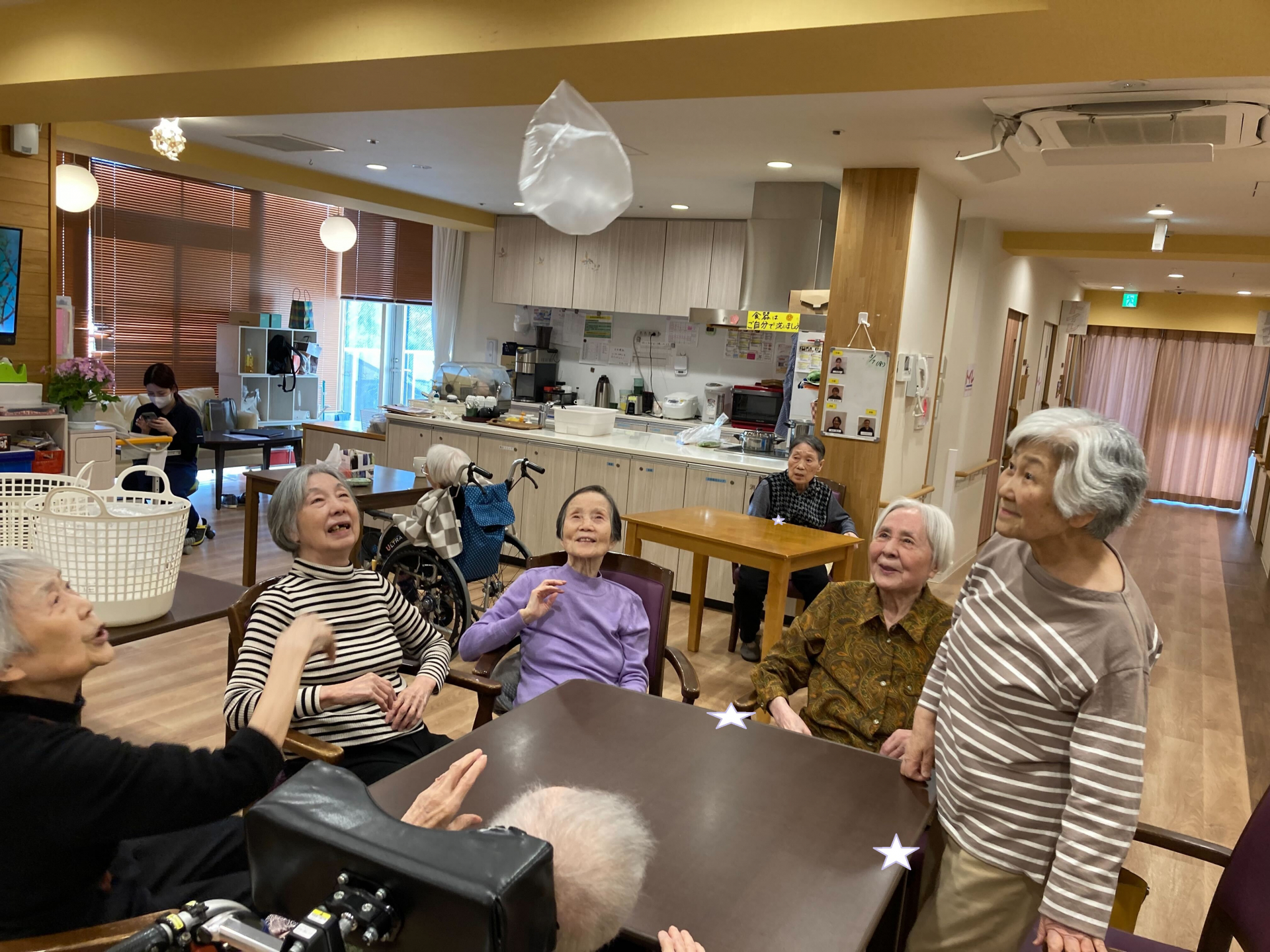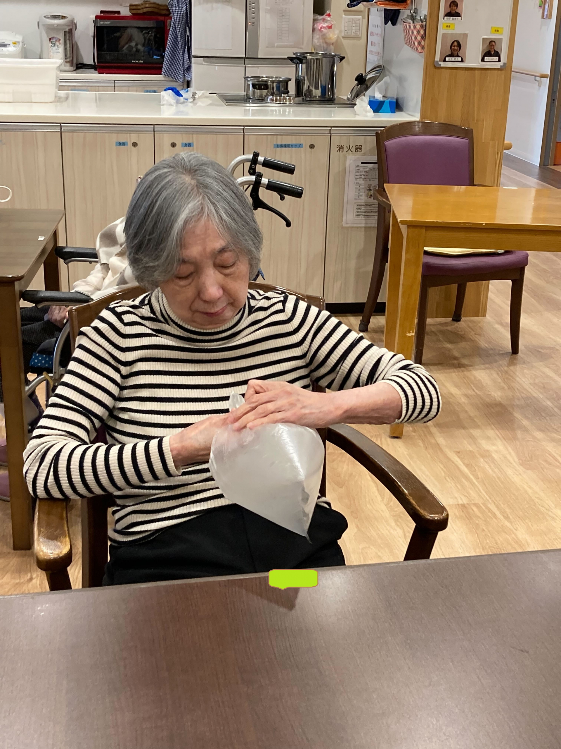 2025.03.07 活動報告 レクレーション時間(^^♪ Tweet シェアする 」今日のレクはビニール袋を膨らませて風船として遊びました♪ 意外と夢中になってしまい汗をかいてしまう程でした😻 GH下馬5丁目 タパ 前の記事 2025.03.08 活動報告 訪問美容☆ヘアカット 次の記事 2025.03.05 活動報告 ヘアーカット(^^♪ 一覧へ戻る