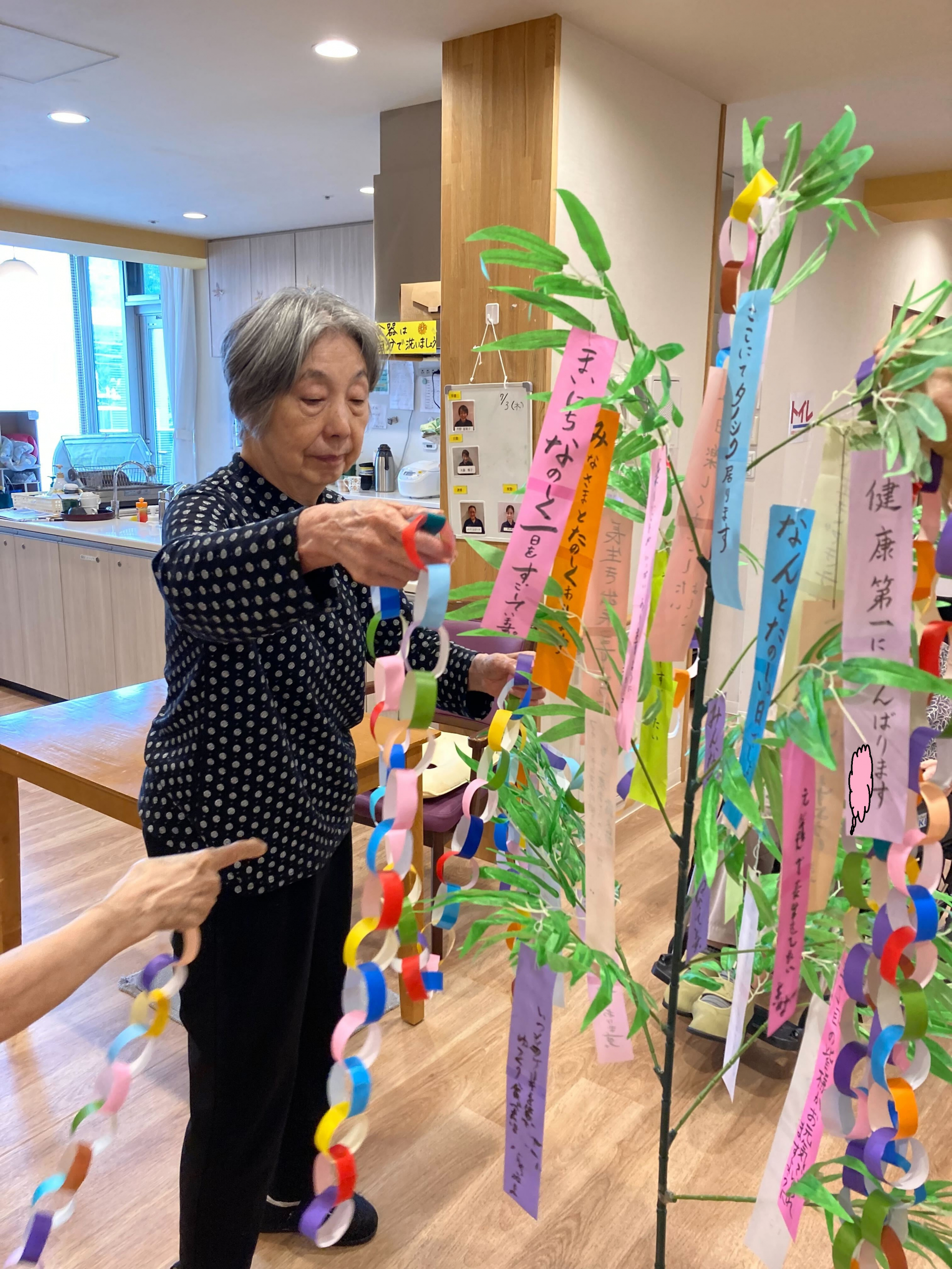 2025.07.03 活動報告 七夕♪ Tweet シェアする 本日、遅ればせながら七夕🎋飾りを飾りました♪ 皆様の願い事が叶いますよ〜に.... GH下馬5丁目 タパ 前の記事 2025.07.04 活動報告 【グループホームの雰囲気】昭和小学校との交流♬ 次の記事 2025.07.02 活動報告 【グループホームの雰囲気】訪問理美容☆彡 一覧へ戻る