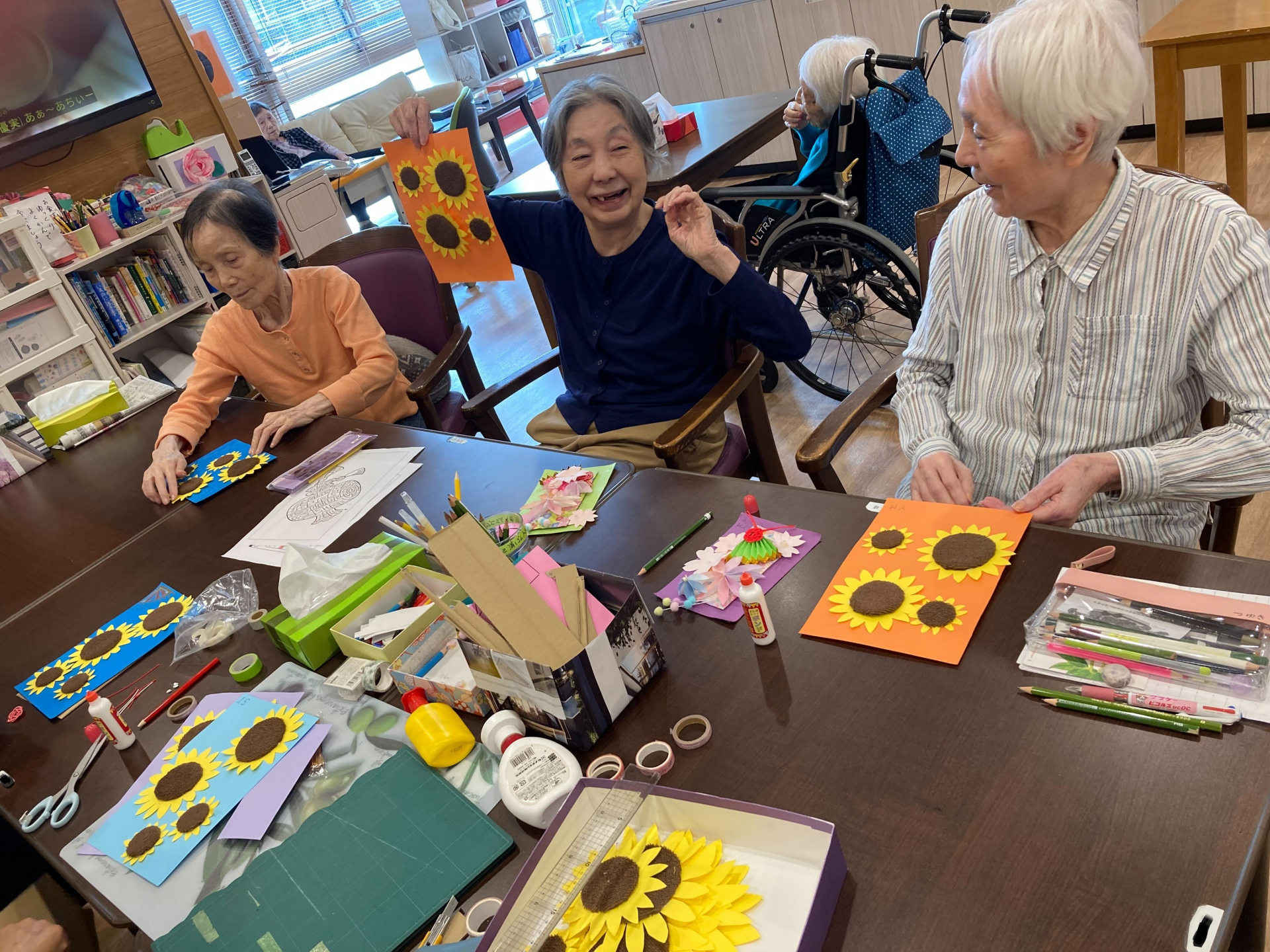 2025.07.07 活動報告 ひまわり作り(^^)/ Tweet シェアする ひまわりを作りました! そして部屋の前に飾りました(^^♪ お部屋に帰るのが楽しみになりそうですね(*^-^*) 5丁目 原 前の記事 2025.07.08 活動報告 【グループホームの雰囲気】日中のご様子☆彡 次の記事 2025.07.07 活動報告 【グループホームの雰囲気】願い事☆彡 一覧へ戻る
