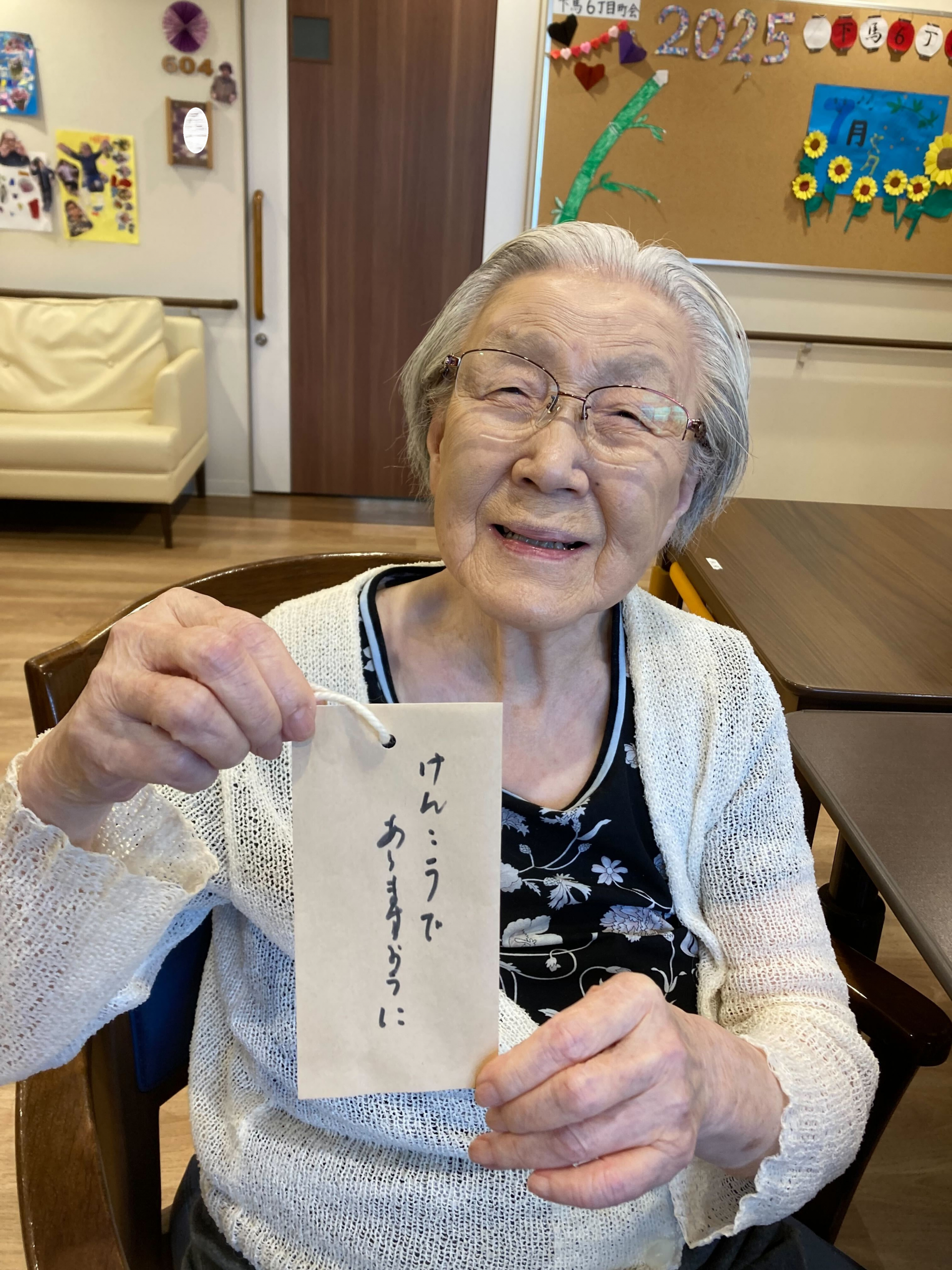 2025.07.07 活動報告 【グループホームの雰囲気】願い事☆彡 Tweet シェアする 7月7日の七夕に願いを込めて☆彡 優っくり村下馬 杉原 前の記事 2025.07.07 活動報告 ひまわり作り(^^)/ 次の記事 2025.07.04 活動報告 【グループホームの雰囲気】昭和小学校との交流♬ ③ 一覧へ戻る