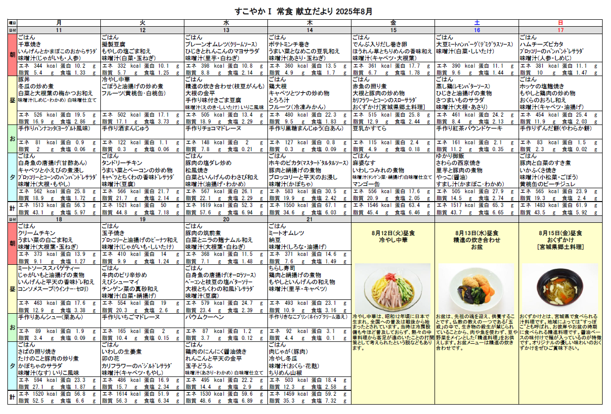 2025.07.30 お食事 8月の献立♬ Tweet シェアする 8月の献立をお伝えします☆彡 優っくり村下馬 杉原 前の記事 2025.07.30 お食事 【グループホーム雰囲気】8月壁紙作り☆彡 次の記事 2025.07.30 お食事 【グループホームの雰囲気】昼食♬ 一覧へ戻る