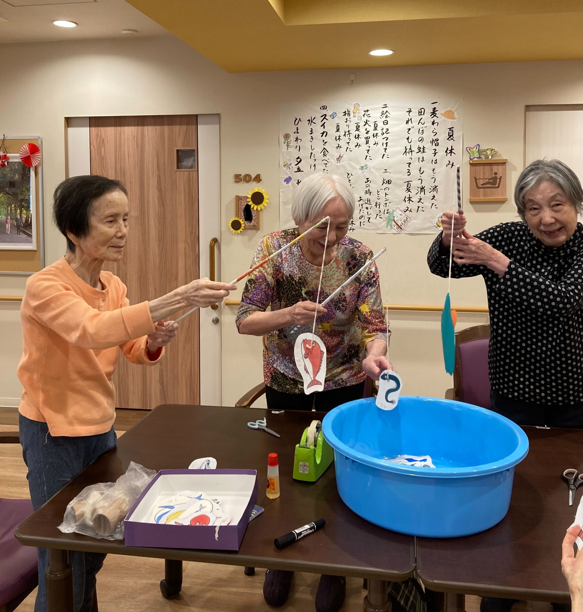 2025.08.04 活動報告 【グループホーム雰囲気】釣り堀レク! Tweet シェアする 本日は釣り堀レクを初めて開催しました!皆さん大はしゃぎ(´∀`)/釣り糸の先についた磁石同士がくっついてしまい笑いが起きていました♪ 5丁目 原 前の記事 2025.08.05 活動報告 【グループホームの雰囲気】日中のご様子☆彡 次の記事 2025.08.03 活動報告 【グループホーム雰囲気】盆踊り大会☆彡 一覧へ戻る