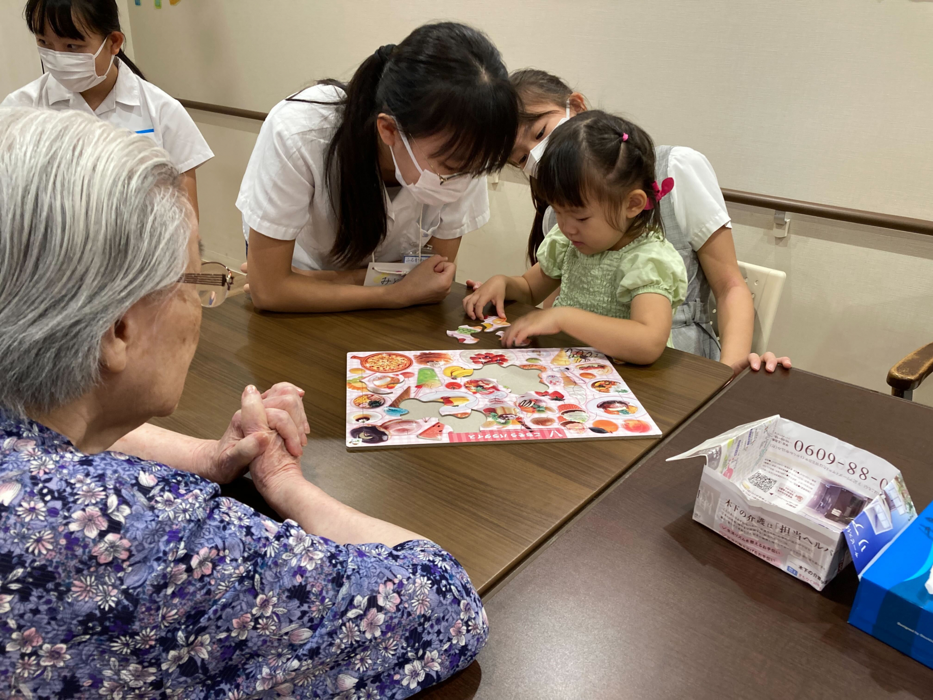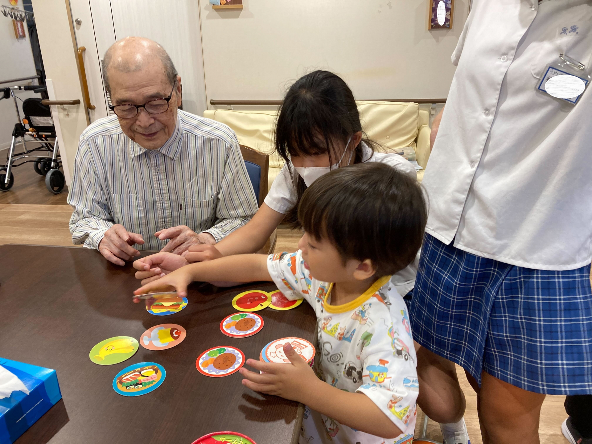 子どもたちと触れ合う際のご利用者様の笑顔は、いつもと少し違う、いきいきとした表情でとても素敵でした(^^♪
