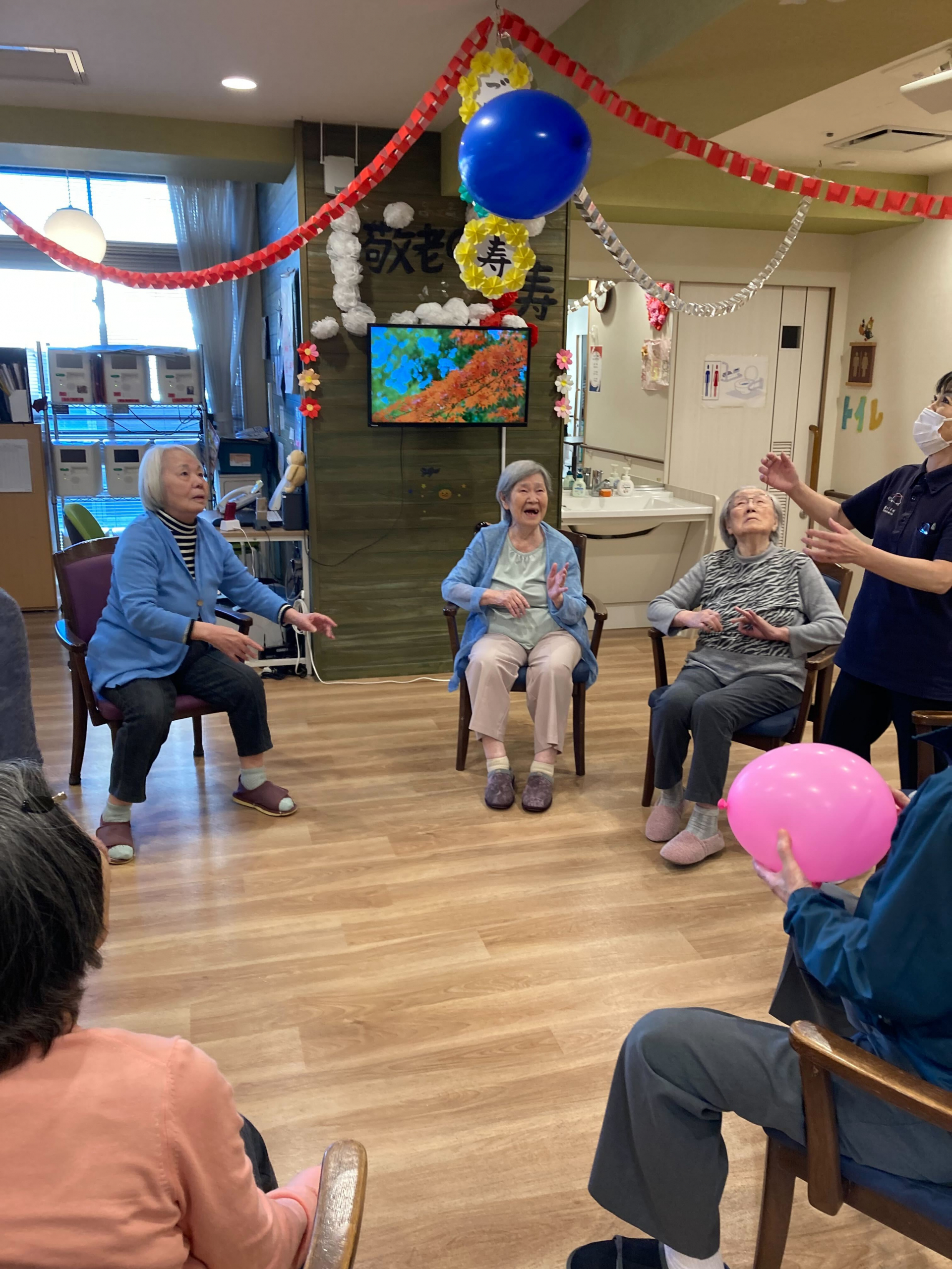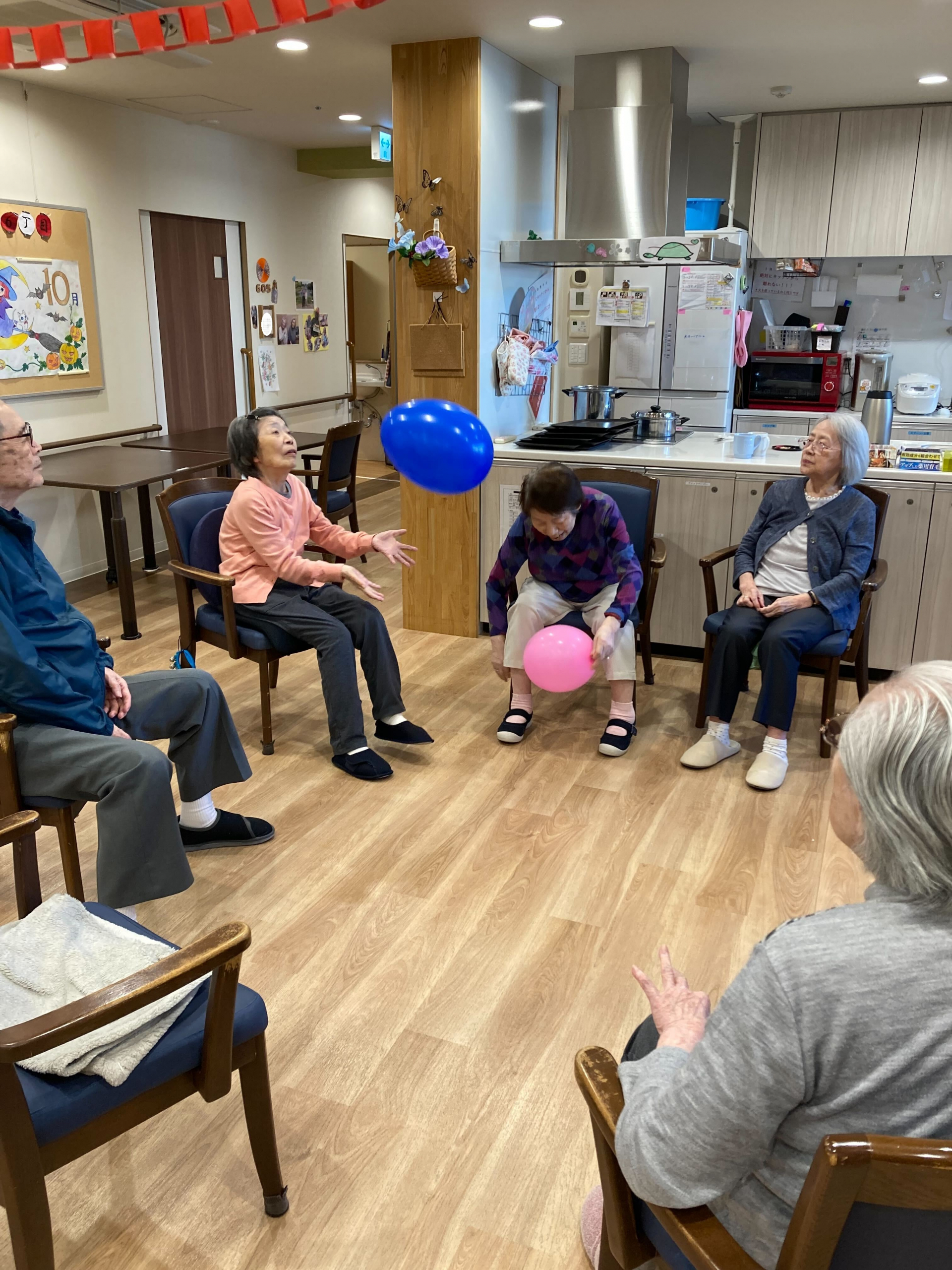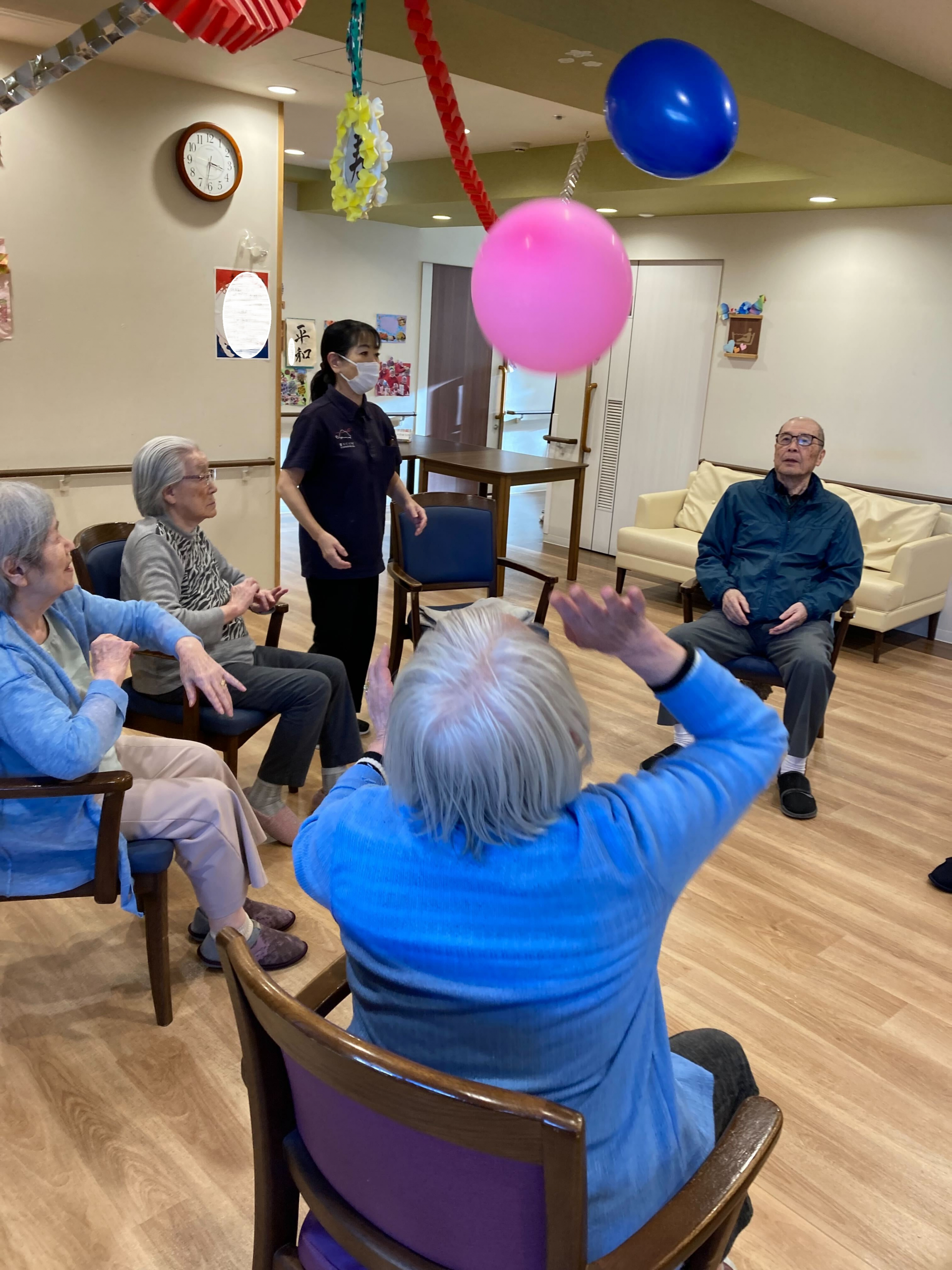 風船を打ち上げたりキャッチしたりしながら、皆様笑顔で楽しんで参加されていました。腕や体を動かすことで、軽い運動にもなり、良い気分転換となりました(^^♪