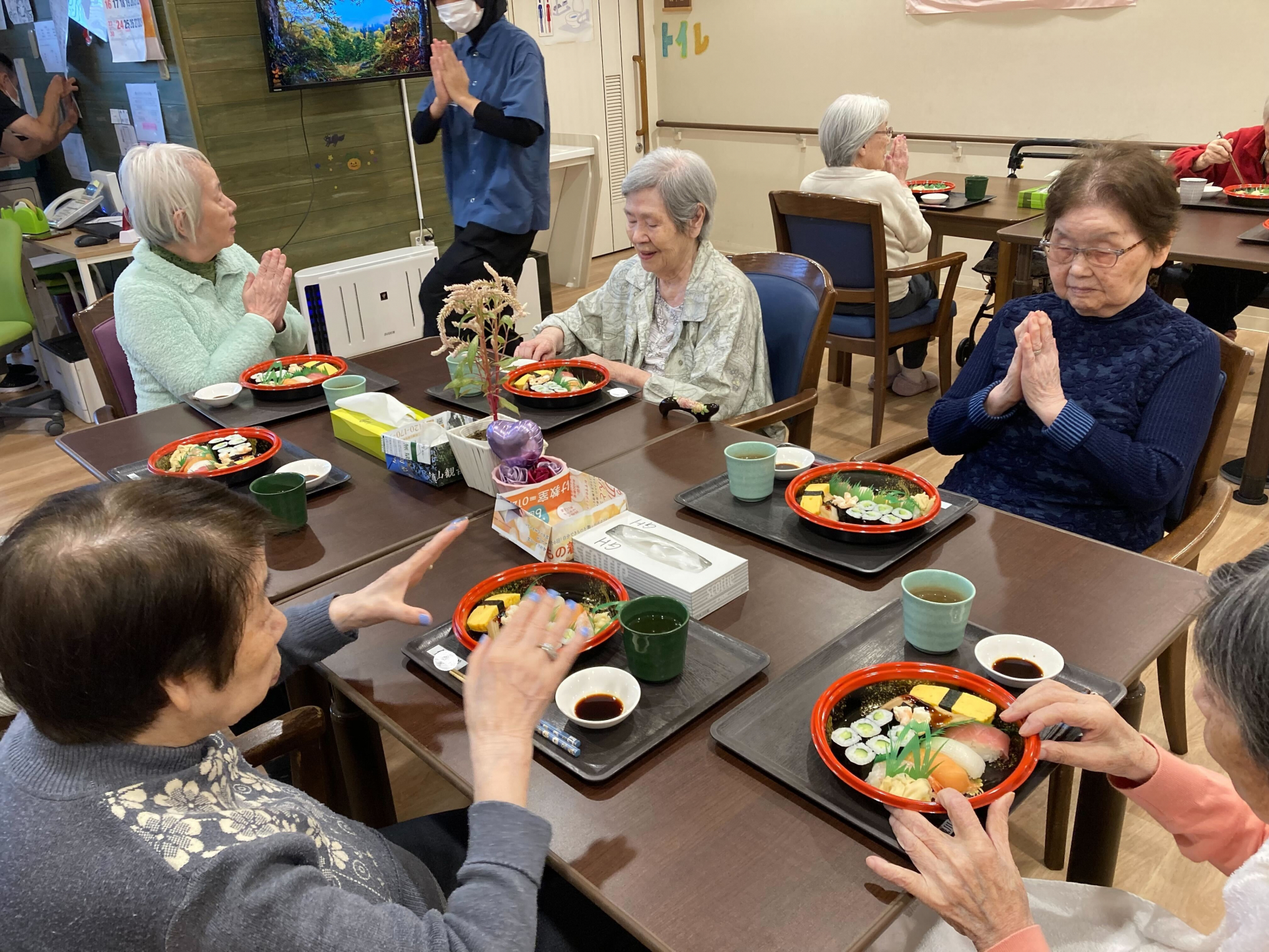 2025.11.25 活動報告 【グループホームの雰囲気】お寿司☆彡 Tweet シェアする 今日はS様のお誕生日でした♬皆様でお寿司を召し上がり、お祝いしました(^^♪ 優っくり村下馬 杉原 前の記事 2025.11.25 活動報告 【グループホームの雰囲気】S様お誕生日☆彡 次の記事 2025.11.23 活動報告 【グループホームの雰囲気】外気浴♬ 一覧へ戻る