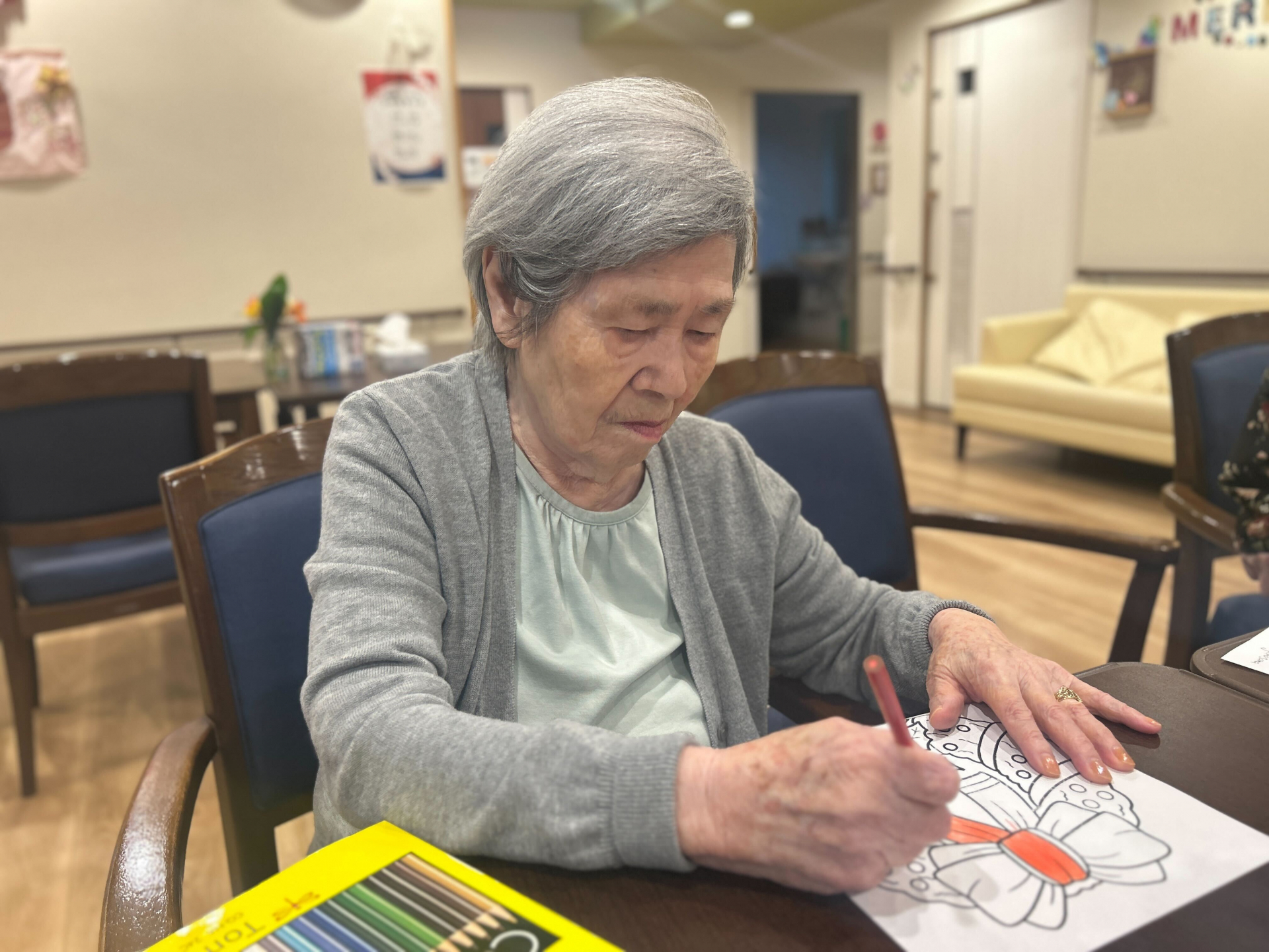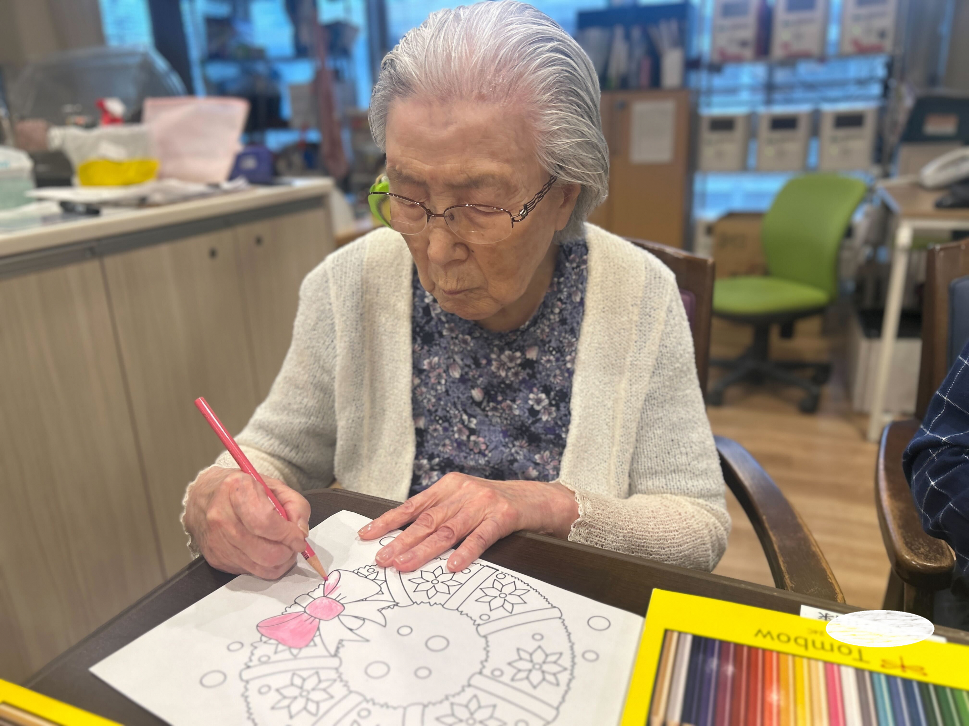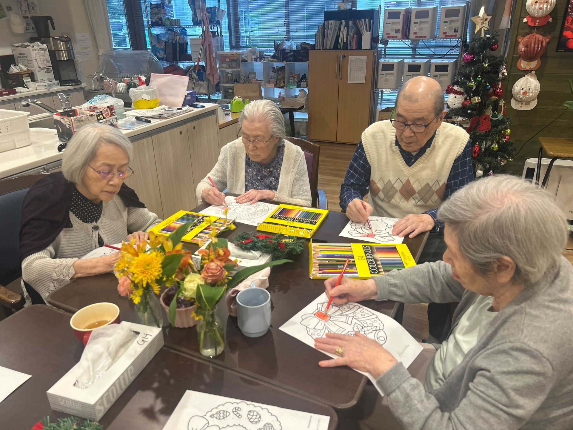 クリスマスの飾りの色塗りをしていただき、楽しそうに取り組まれていました☆彡
