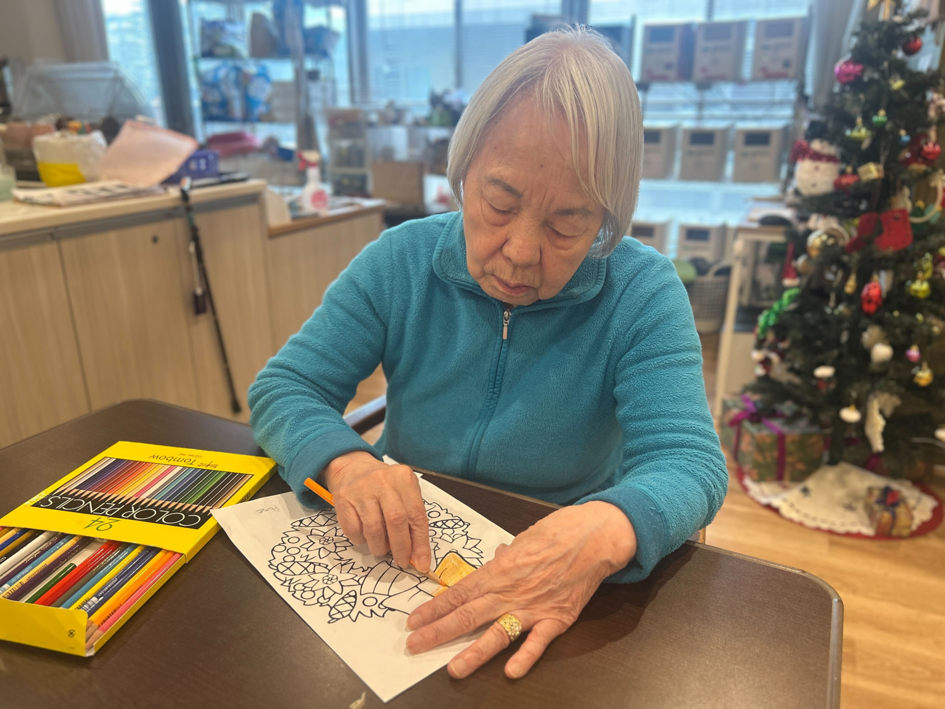 クリスマスの飾りの色塗りをしていただき、楽しそうに取り組まれていました☆彡