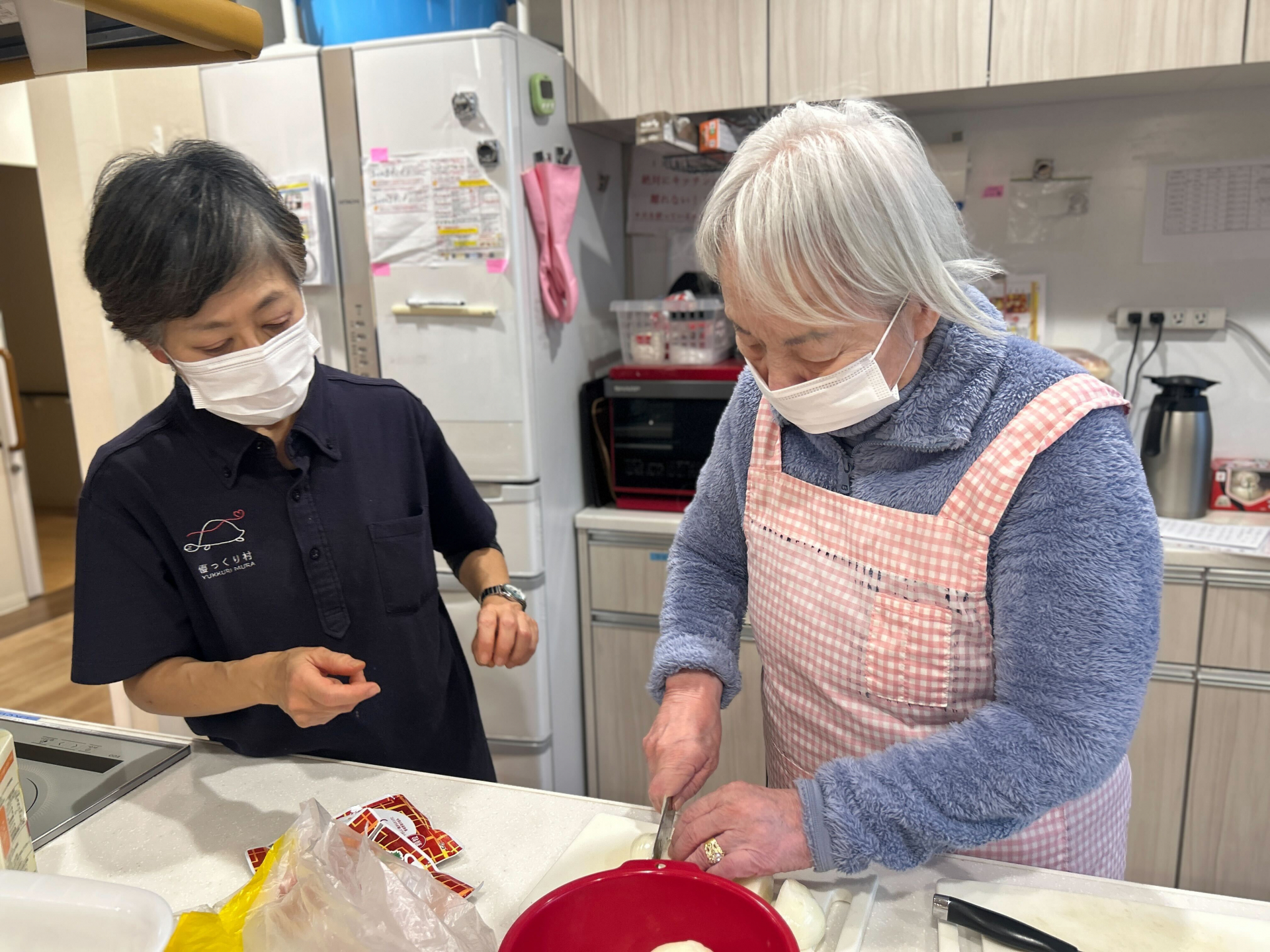 皆様で声を掛け合いながら協力して調理を進め、キッチンには良い香りが広がり、とてもおいしそうなシチューが完成しました。パンは職員による手作りで、焼きたての香ばしさも加わり、クリスマスらしい特別な昼食となりました♬
