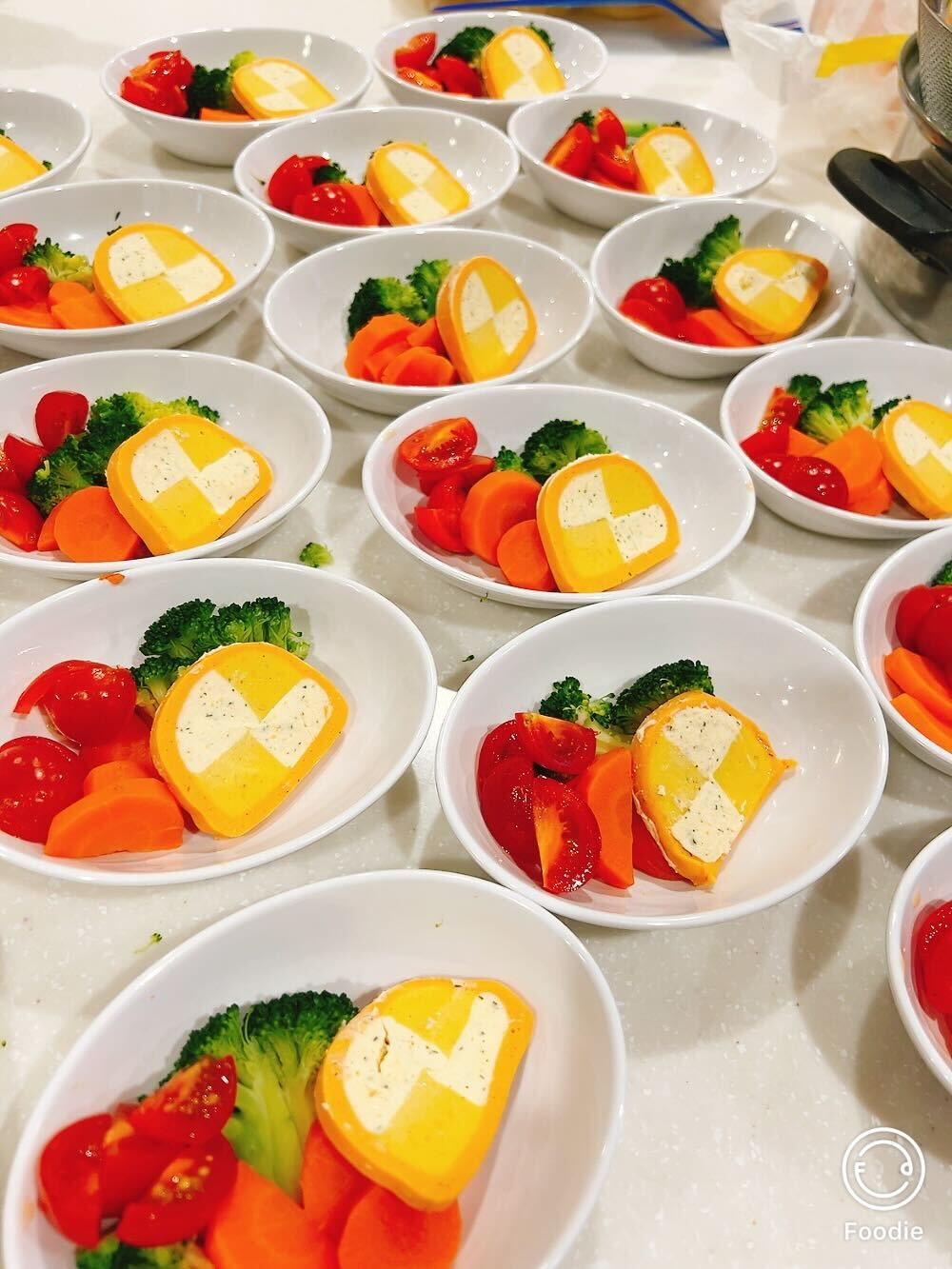 当日の昼食は、シチュー、ゆで野菜サラダ、サーモンのテリーヌ、手作りパン、カルピスをご用意しました。シチュー作りには、主に6丁目ユニットのご利用者様にお手伝いいただき、野菜を切ったり、たまねぎの皮をむいたり、具材を炒めたりと、それぞれ出来る作業に積極的に参加してくださいました♬