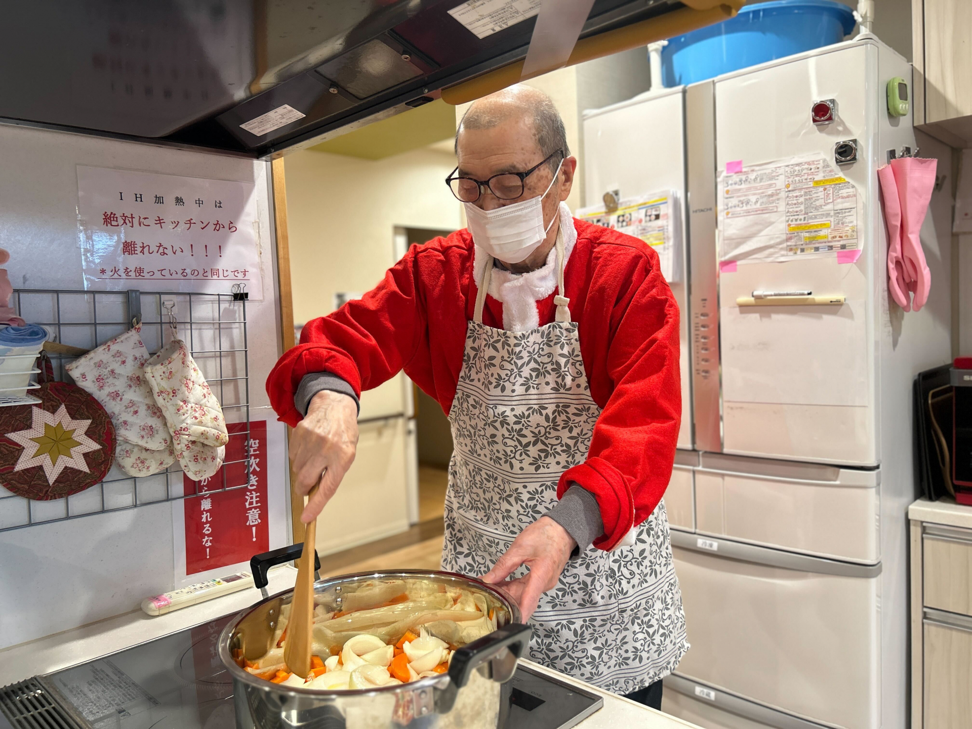 皆様で声を掛け合いながら協力して調理を進め、キッチンには良い香りが広がり、とてもおいしそうなシチューが完成しました。パンは職員による手作りで、焼きたての香ばしさも加わり、クリスマスらしい特別な昼食となりました♬