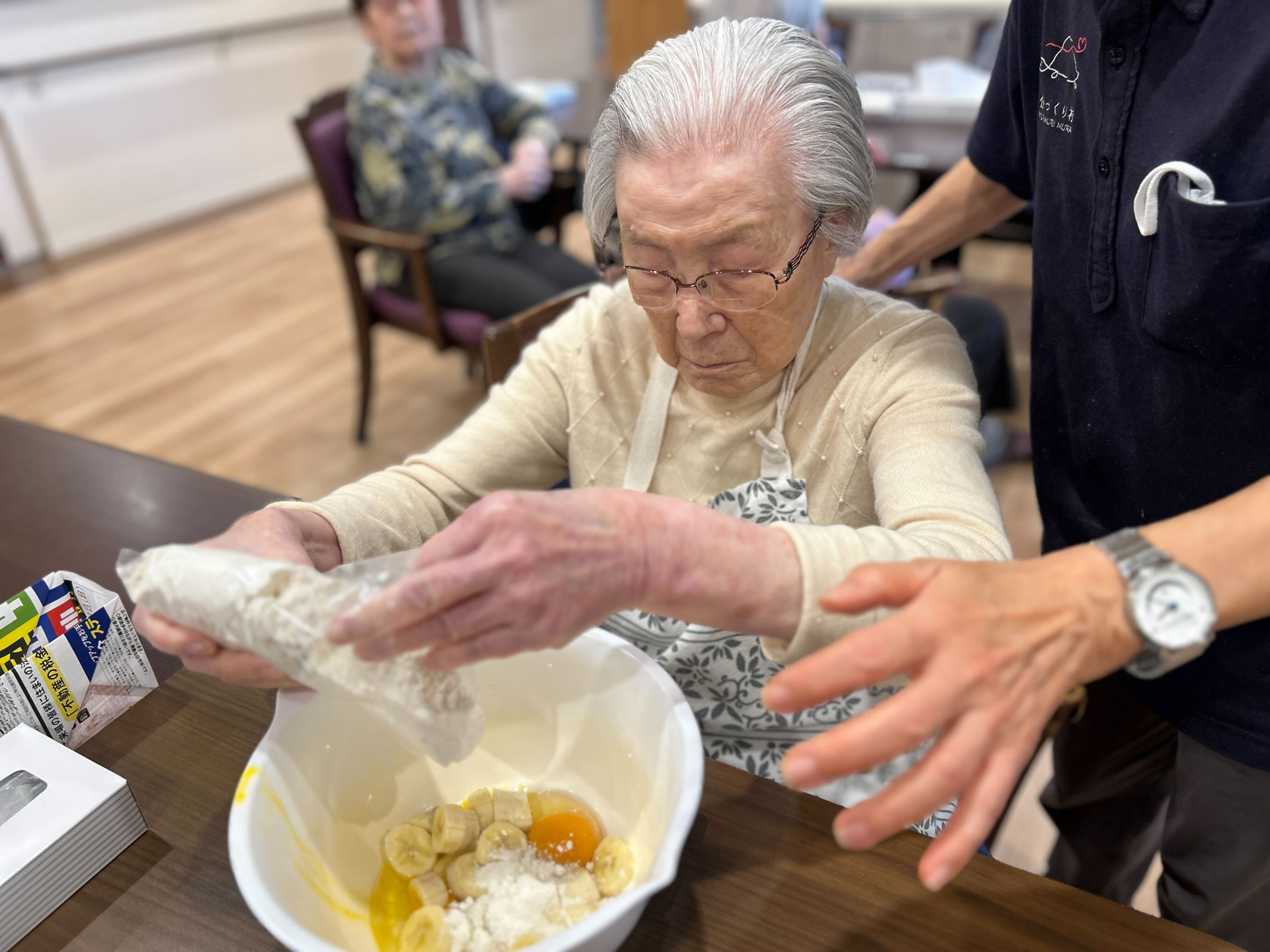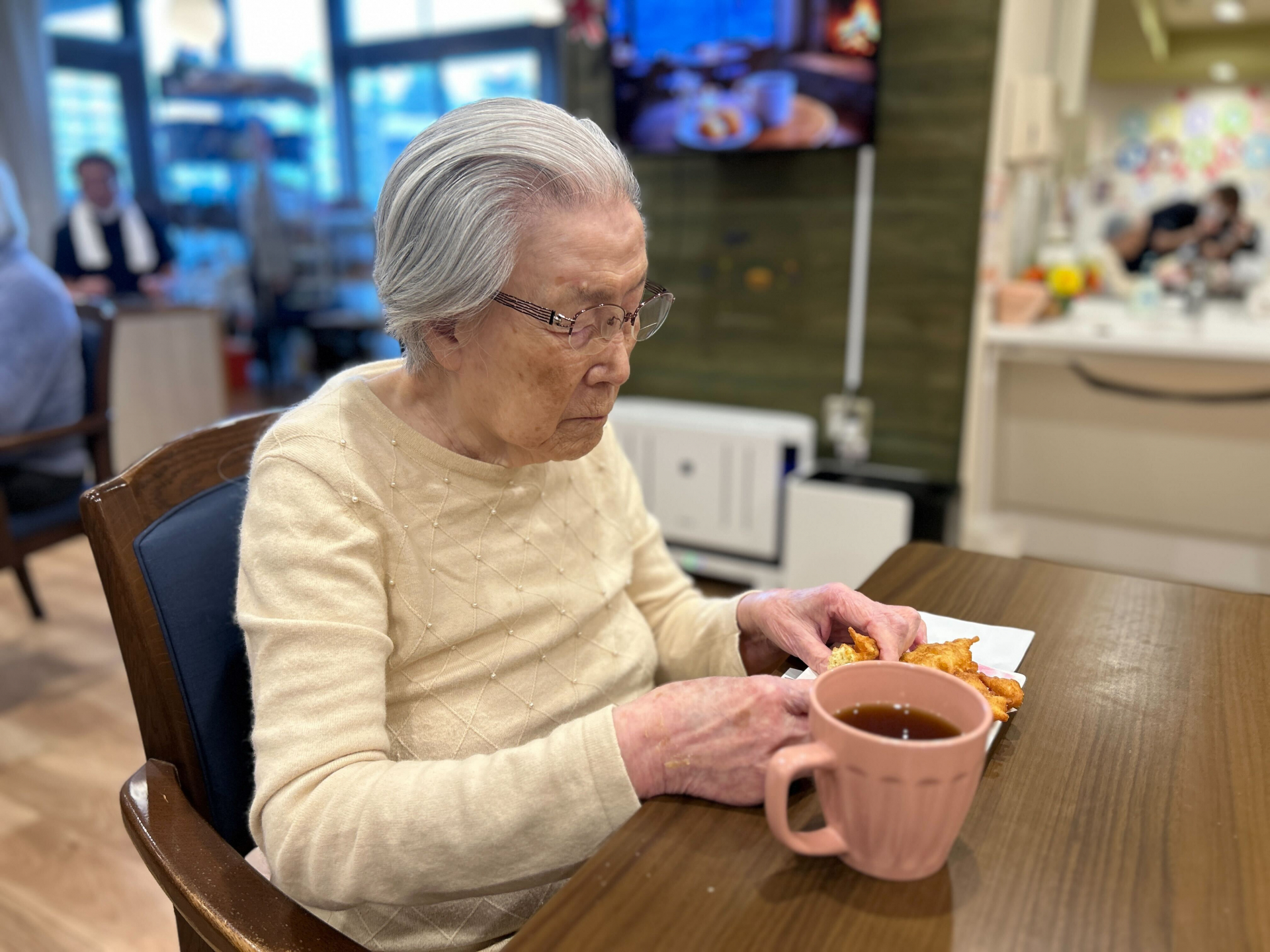 出来上がったドーナツは、おやつの時間に皆さんで美味しくいただき、手作りならではの温かさを感じるひとときとなりました(^^♪