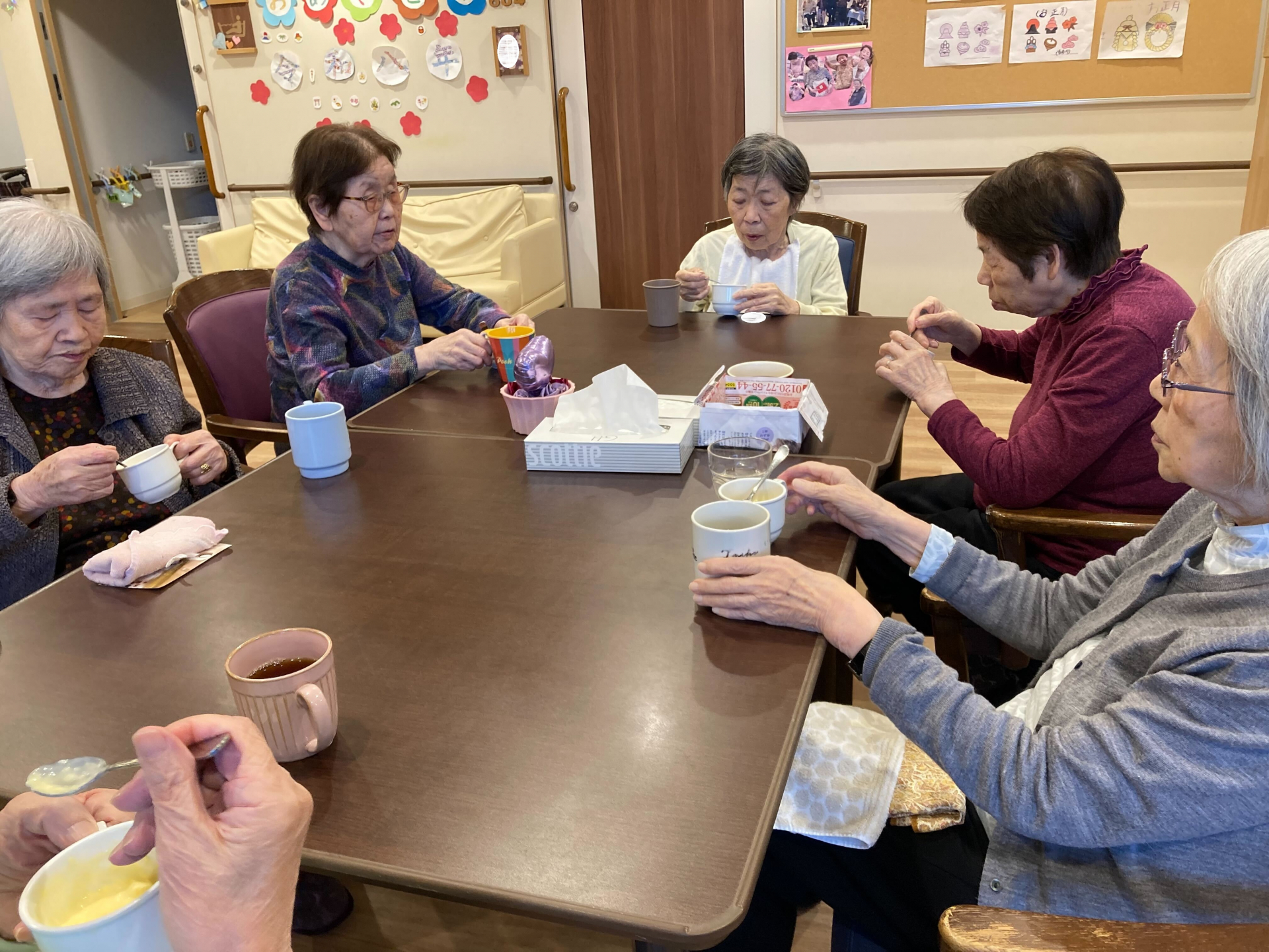 おやつの時間に、皆さんでプリンアラモード作りを行いました☆彡