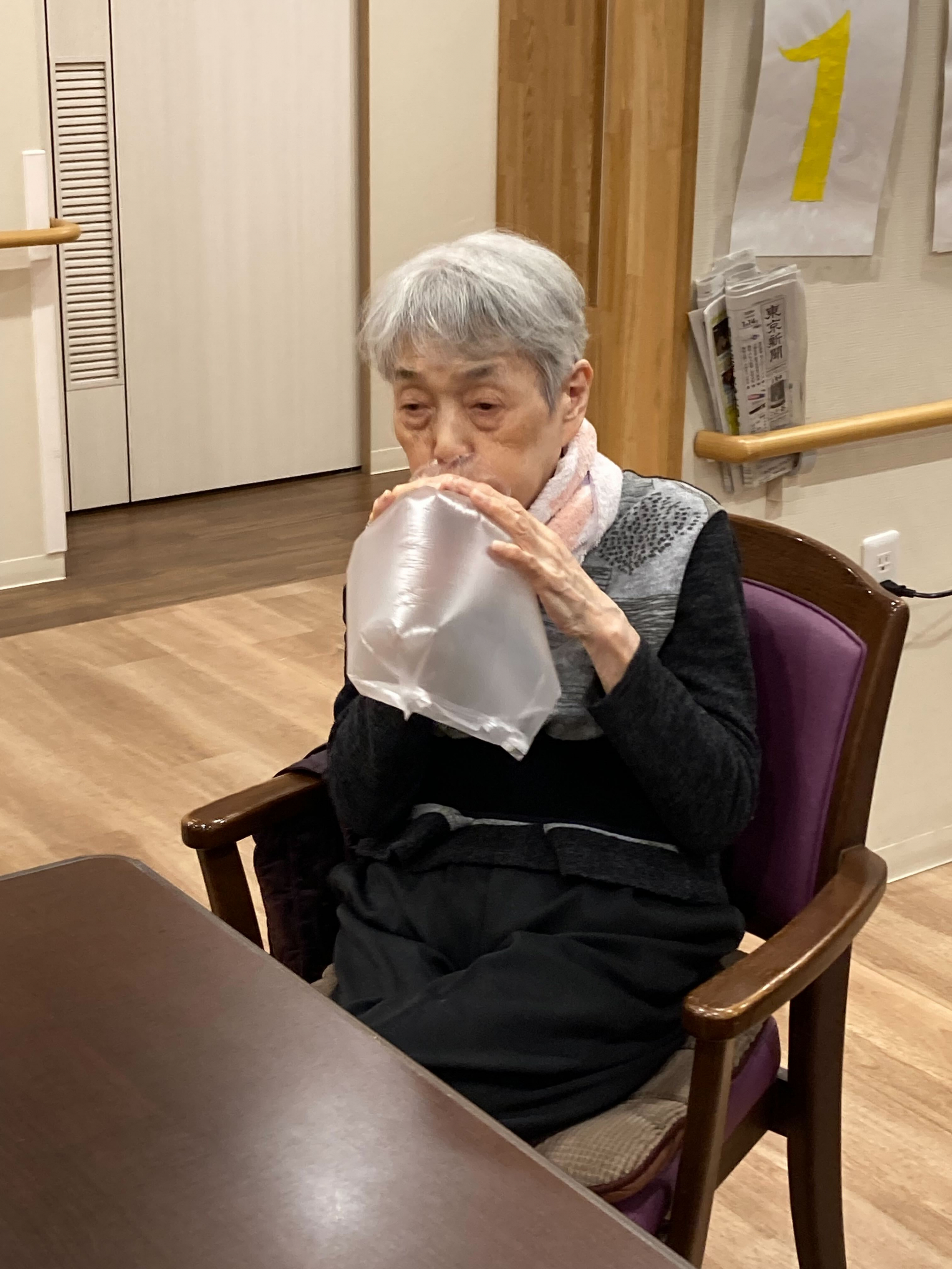 ビニール袋を使って風船を作り、紙風船のようにボンボンと飛ばして遊んでみました♬