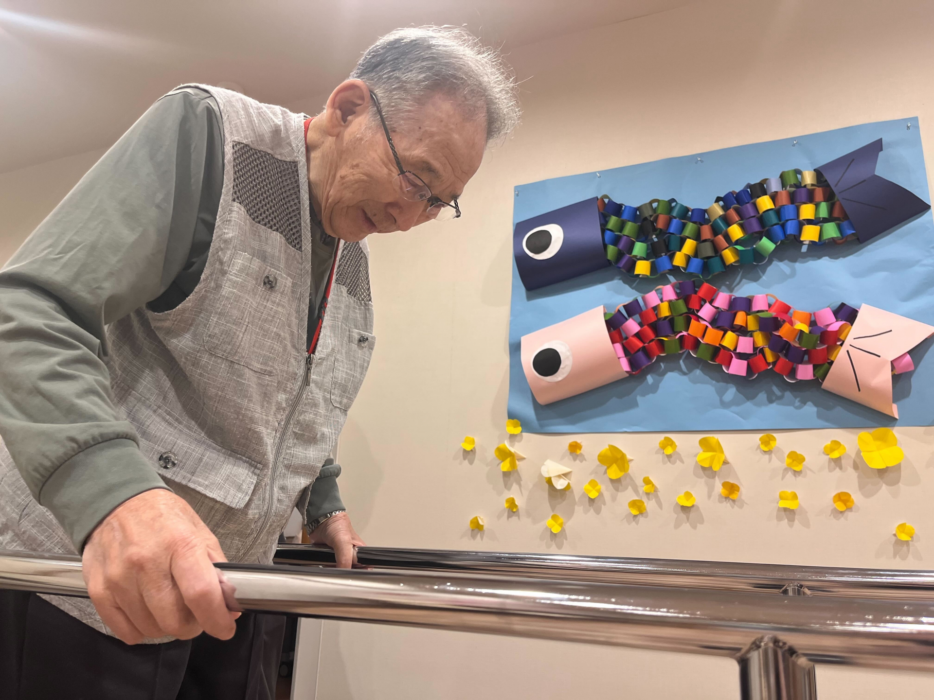 手すりに掴まらないで歩行したり、膝上げ歩行をしたりと、個人に合わせて色んなバリエーションで行っております。